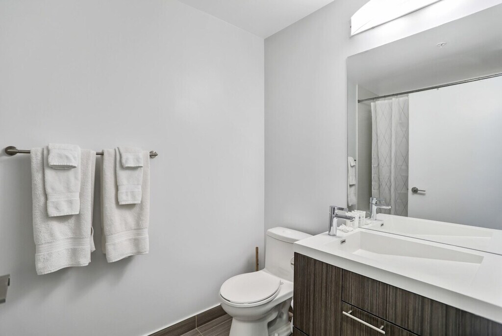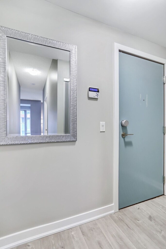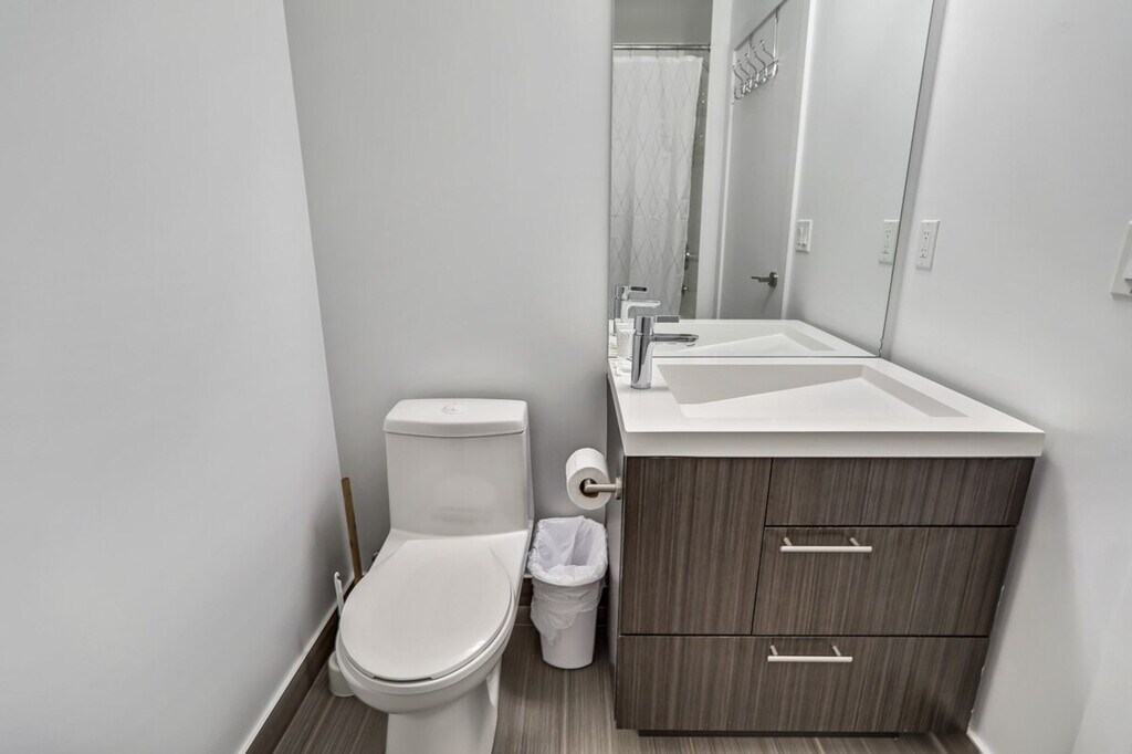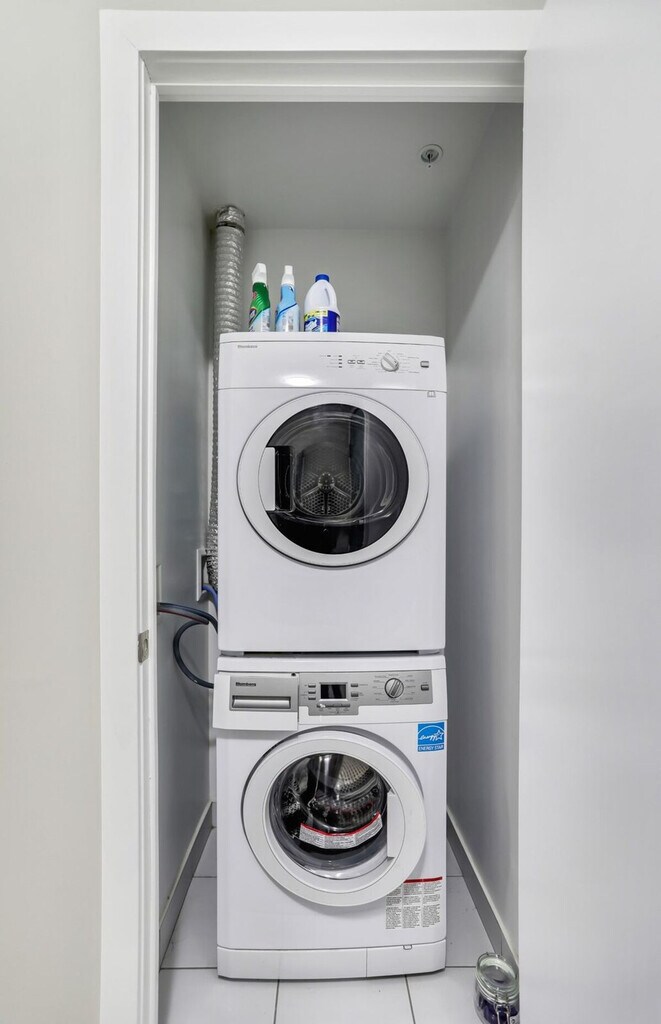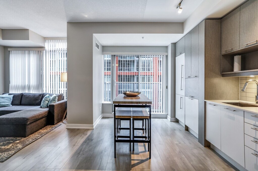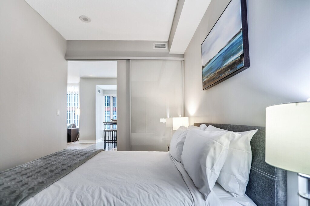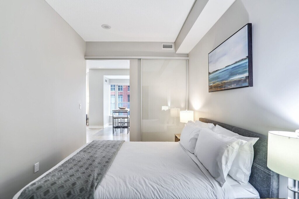 Experience the heart of downtown living with this clean and modern 1-bedroom condo on Nelson St. Feel at home with a fully equipped kitchen and in-unit laundry, complemented by high-speed 2 Gbps unlimited fibre internet and a smart TV. The separate bedroom features a queen bed, and there's a dedicated workspace with a desk and chair for your convenience. The condo boasts a state-of-the-art fitness facility and a rooftop terrace, offering a perfect blend of comfort and luxury. With amenities like groceries and dry cleaning at your doorstep, you'll have everything you need within reach. Professionally managed with a 30-night minimum stay requirement, ensuring a seamless living experience. Located less than 5 minutes from Osgoode Subway, hospitals, and the Financial District, this condo offers unparalleled access to the city's key destinations. The dedicated workspace includes a desk and chair, ideal for remote work. A laptop computer is not included. [SI]