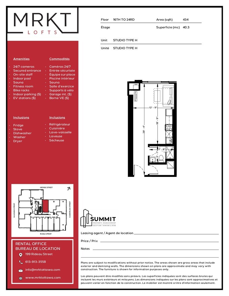 Studio (434 sqft) – $1,685 – May 1 lease reassignment (5 months) – 199 Rideau St Heat & hot water included | New 2025 building | In-suite laundry | Downtown Ottawa $200 CASH INCENTIVE AVAILABLE FOR IMMEDIATE VIEWING! Current tenant reassigning unfurnished studio from May 1 – Oct 1, 2026 (option to extend with management). Located at MRKT Lofts, steps to Rideau Centre, ByWard Market, Rideau O-Train, uOttawa, Loblaws & Metro. • 434 sqft luxury studio, 1 bath • Modern new kitchen with stainless steel appliances • In-suite washer & dryer • Private thermostat, window blinds • Heat & hot water included • Other utilities ~$35/month + tenant insurance ~$11 Building amenities: pool, sauna, gym, bike storage, secure entry, elevators, cameras. Underground parking available for extra. Pets welcome. Message if interested ASAP — reassignment process through building management.