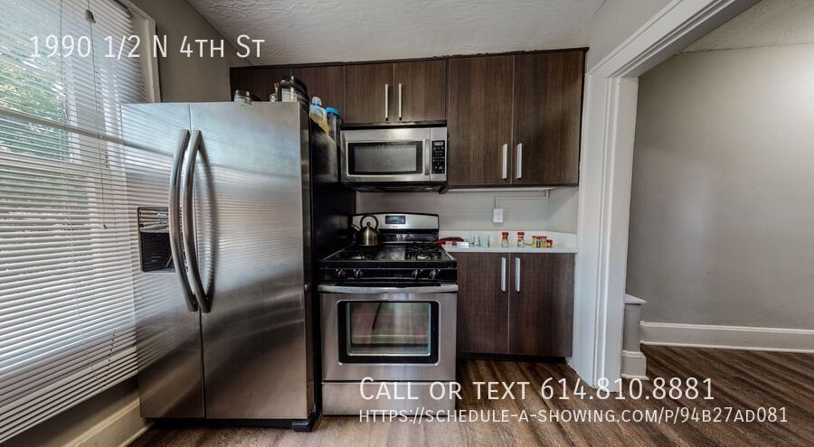 This unit is located on the second and third floors. You can enter through the back of the home into the kitchen with updated cabinets and stainless steel appliances. Through the hallway, you can access the third-floor bedroom which runs the entire length of the unit. The hallway also gives you access to the bathroom with a subway tiled shower and the other rooms. The front bedroom has access to exterior steps leading out to 4th St. **Laundry is onsite, located in the basement with a washer and dryer. No need to have utilities in your name! In addition to your rent, there will be a monthly flat rate charge for utilities. Electric: $85 Gas: $75 Water: $65 All Renting Ohio Connection residents are enrolled in the Resident Benefits Package (RBP) for $50.00/month which includes liability insurance, credit building to help boost the resident’s credit score with timely rent payments, up to $1M Identity Theft Protection, HVAC air filter delivery (for applicable properties), move-in concierge service making utility connection and home service setup a breeze during your move-in, our best-in-class resident rewards program, on-demand pest control, and much more! More details upon application. The online tour is at: Applications are available at