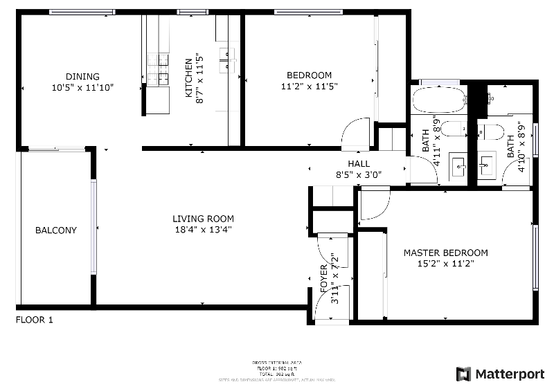 There is currently a 2 Bed 2 Bath Apartment for rent with 982 listed at 1991 Evergreen St. It is Available Now.