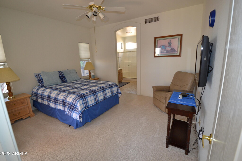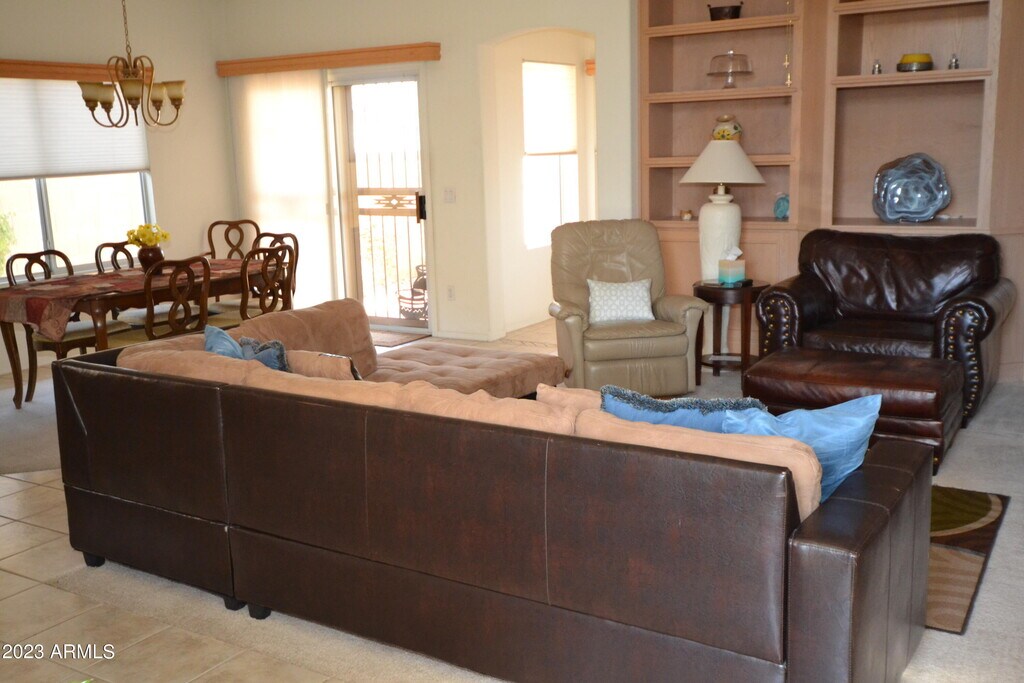 55+ Active-Adult Community which offers many activities,beautiful walking paths,community pools,spas,tennis,etc. Great open and light floor plan with split master bedroom. Built-in murphy bed in 2nd bedroom,queen in 3rd bedroom. Inviting backyard nicely landscaped w/saltillo tiles used to extend patio area & gorgeous mountain views. BBQ and patio set included. $100.00 cap on electricity/per month. NO PETS. NO SMOKING.