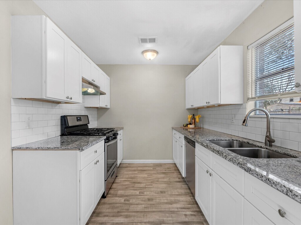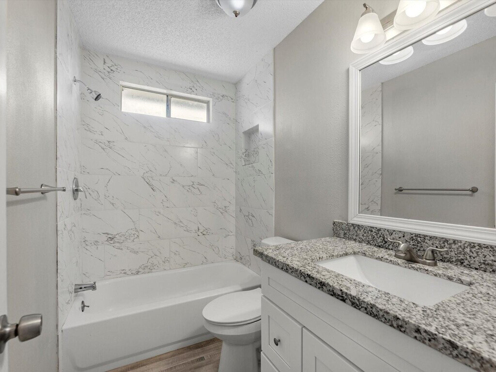 Beautifully remodeled 3 bedroom,2 1/2 bath home ready for immediate move-in. Step inside to a spacious family room featuring a charming brick fireplace that welcomes you right at the entry. Dining room offers a bright garden window - perfect for growing herbs,vegetables or favorite houseplants. The updated kitchen has replaced cabinetry,stainless steel appliances and granite countertops with matching granite finishes carried into the bathrooms for a cohesive,modern look. Downstairs features wood laminate flooring throughout as well as in the upstairs common areas. All bedrooms are finished with carpet adding warmth and comfort. The primary bedroom includes an en-suite bath while the two additional bedrooms share a full bath. Recently replaced fence and large backyard with storage building are perfect for entertaining. Subdivision located close to 1960 and Hwy69 w/lots shopping & dining. All room sizes are estimated and should be independently verified. MLS# 26816737