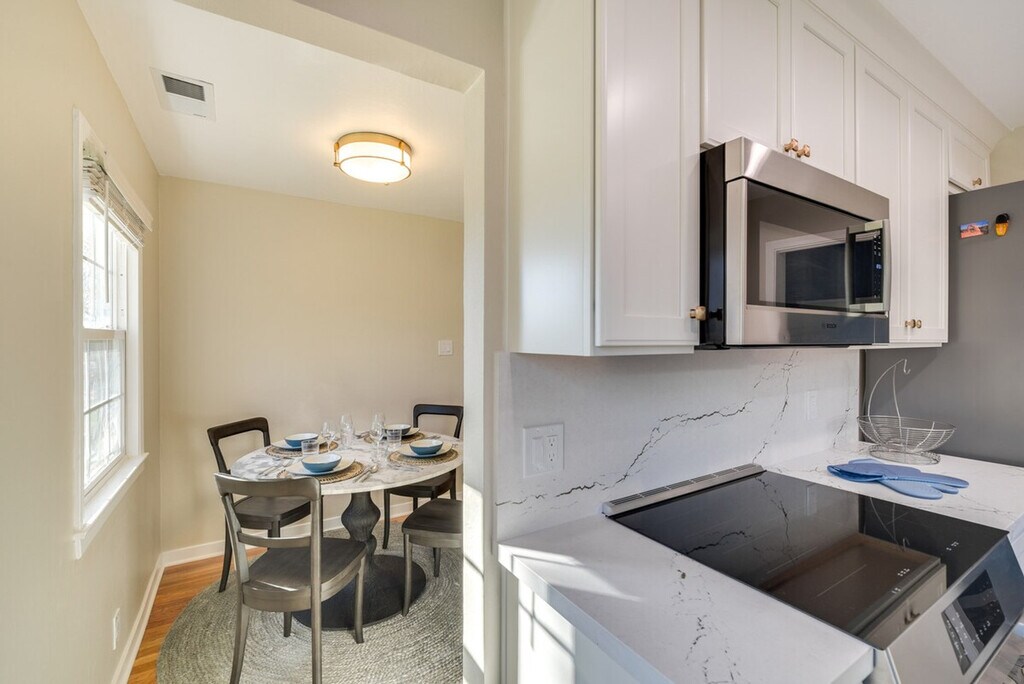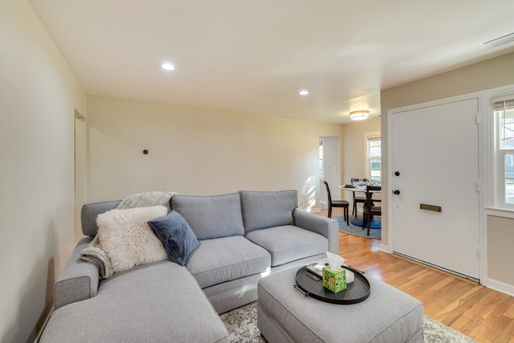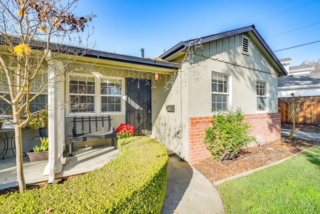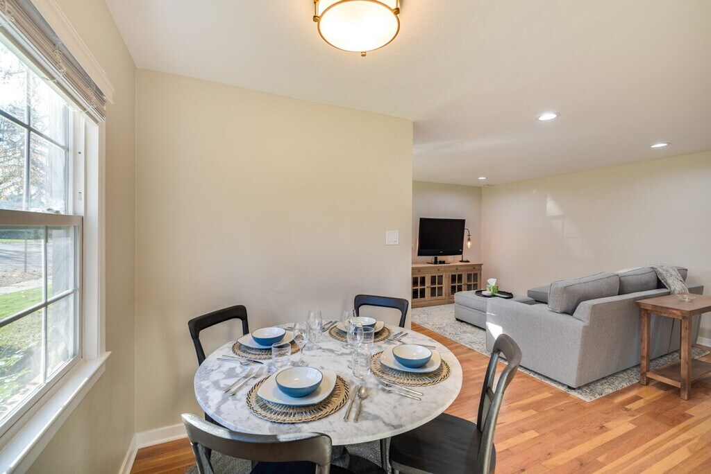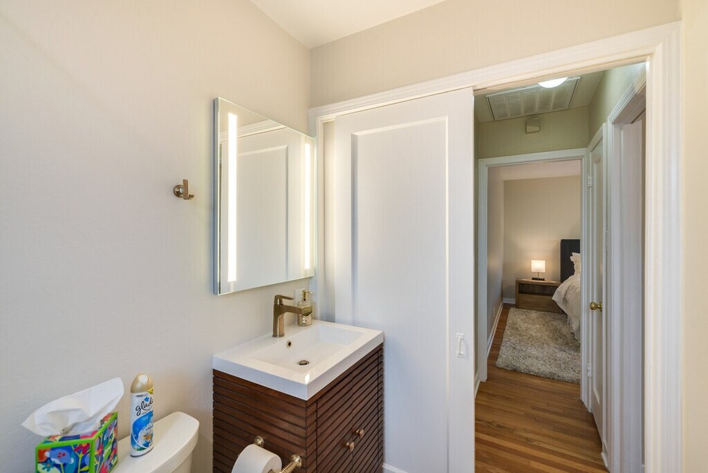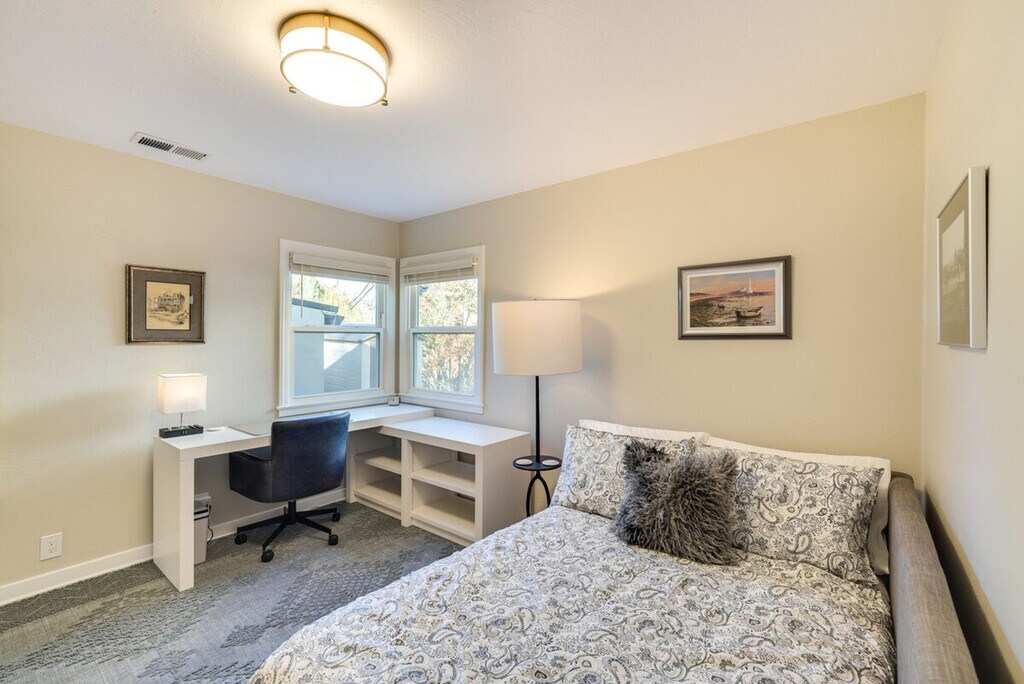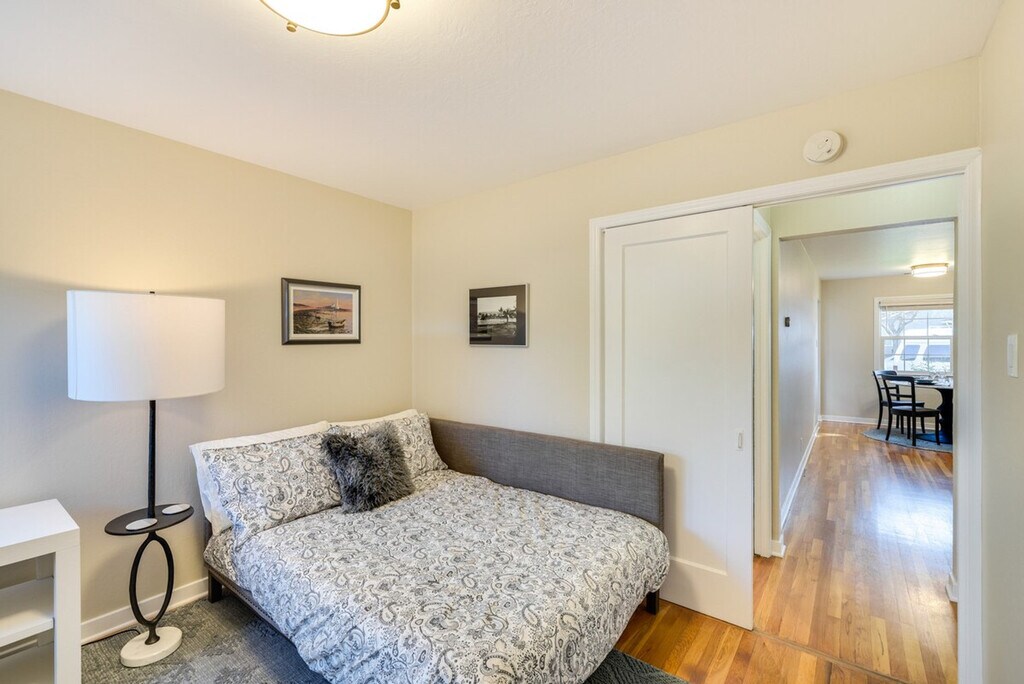 Remodeled in 2024, this bright and inviting 2-bedroom, 1-bath duplex offers a comfortable stay just 4 miles from San Jose State University. Feel at home in this beautifully appointed space, featuring modern amenities and decor touches throughout. The single-story duplex requires just 2 steps to enter, ensuring easy accessibility. The apartment boasts a smart TV with cable, a laptop-friendly workspace, and a dining table for your convenience. The fully equipped kitchen includes a stove, oven, refrigerator, dishwasher, microwave, toaster, French press with provided coffee, tea kettle, ice maker, cooking basics, dishware, and flatware. Parking is available in the driveway for one vehicle, providing added convenience during your stay. Located in the heart of San Jose, you're just a short drive from the city center, where you can enjoy brewery hopping, live music, and endless entertainment options. With easy access to public transportation and major highways, exploring the area is a breeze. The property features a Ring doorbell camera on the front door facing the exterior front entry, recording video and sound when motion is detected or when the video doorbell button is pressed. Smoking, pets, and events or parties are not allowed on the premises. Guests must be at least 30 years old to book, and additional fees and taxes may apply. Photo ID may be required upon check-in. The apartment is equipped with free WiFi and a laptop-friendly workspace, making it ideal for catching up on work or studies. [SI]