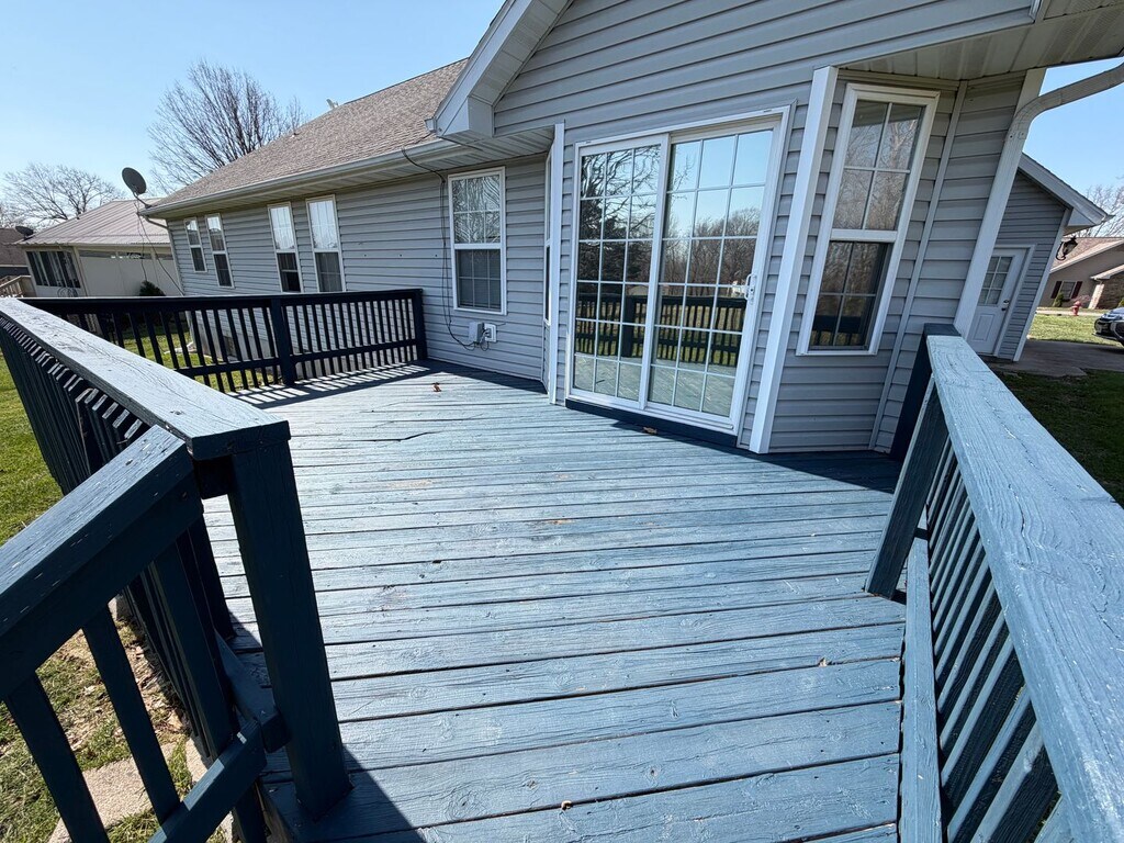 Shalom Mountain Subdivision This 4 bedroom 2 bathroom is located in the quiet town of Waynesville, just minutes from Fort Leonard Wood. Enjoy the amenities of this corner lot with a covered front porch, and deck out back. Walk into the living room with carpeted flooring, vaulted ceilings, and lots of natural light and electric fireplace. The kitchen/dining area offers plenty of room for a small breakfast table, with formal dinning space on the other side of the kitchen, with durable ceramic tile flooring. The master bedroom is spacious and the master bath offers his and hers sinks, and a jetted bathtub. The guest bedrooms are carpeted for comfort with plenty of space for friends and family to visit. Additional features include a 480 sq ft (approx) garage that has alot storage space with built in cabinets. *Homeowner will allow pets upon approval with a $350 non-refundable pet fee per pet. Other Fees May Apply. Listing TypeHouse