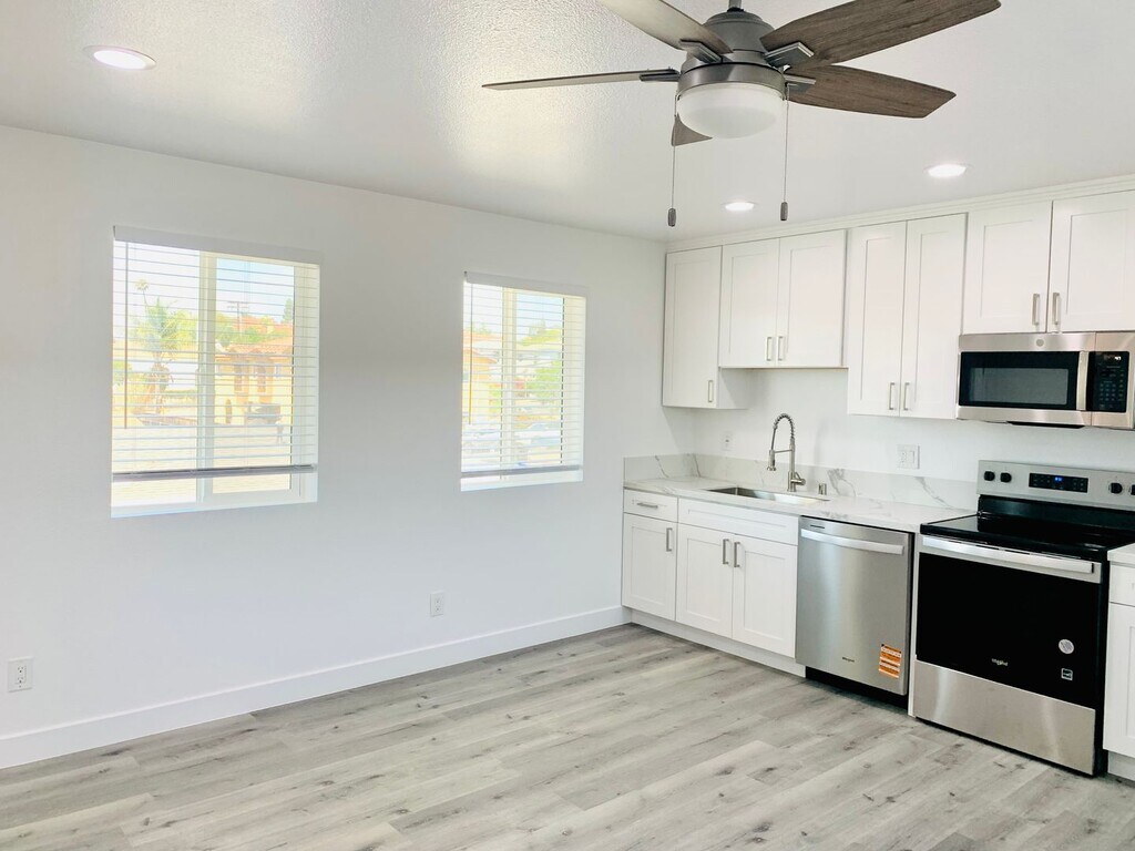 APPLICATION: * Newly Constructed * New Appliances: Electric Range, Refrigerator, Microwave, Dishwasher * Located on 2nd Floor Level * Vinyl Flooring * 1 Full Bath * Mini split's in Living Room and Bedroom * Off-street parking * Great Natural Lighting * New Washer and Dryer In Unit * Utilities Not Included (email us for pricing) * Parking Stalls available for rent (email us for pricing) * Less than 0.5 miles from Linda Vista Farmer's Market * Less than 0.5 miles from Mission Heights Park * 1.2 miles from I-5 Freeway Schools: * Carson Elementary K-5 School * Montgomery Middle 6-8 School * Kearny Engineering Innovation & Design APPLICATION: Requirements: 1. At least one 700 credit score is required 2. No Evictions or Bankruptcies 3. Household Income: 3x's rental rate 4. Verifiable Income and Employment 5. Pets Approved on case-by-case basis; pet restrictions apply 6. For more information or schedule a showing email us at: