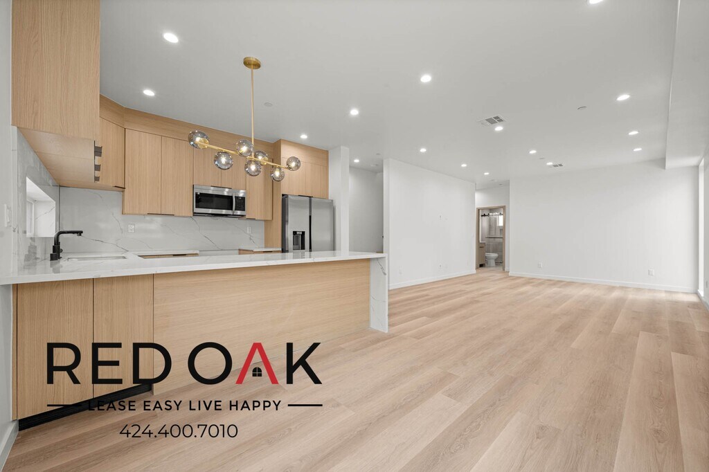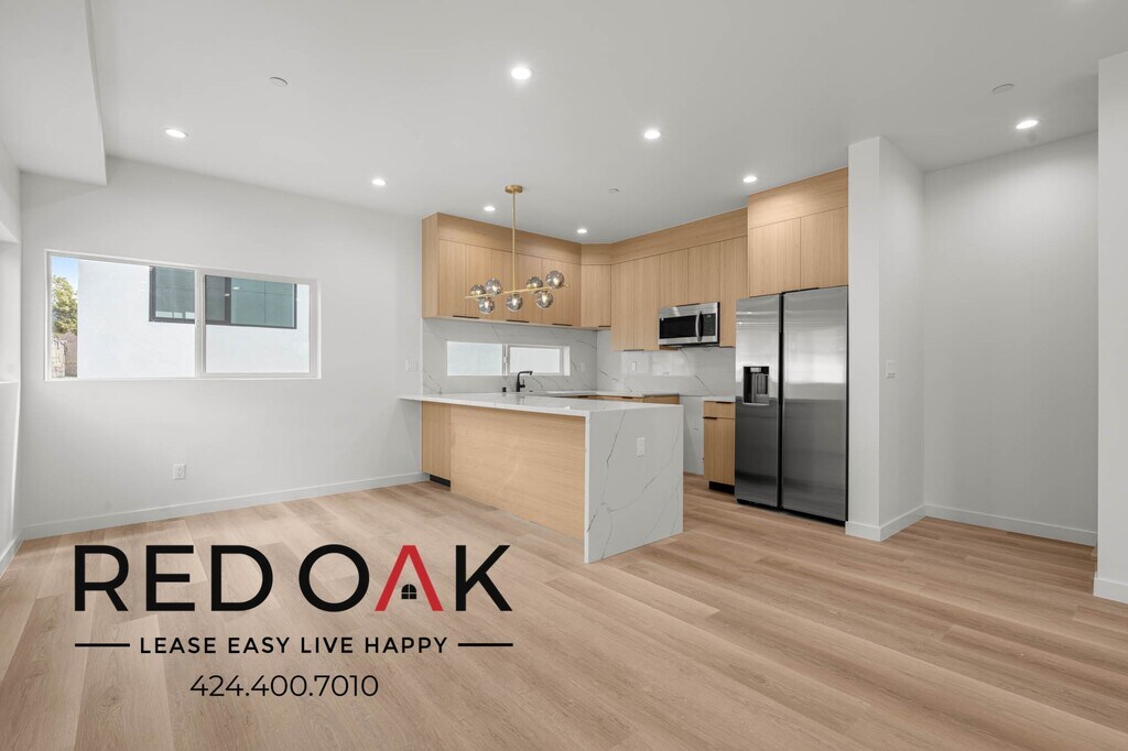 Four Bedroom with Stainless Kitchen Appliances, Balcony, Heat & A/C, In-Unit Washer/Dryer, and Parking Included ~ In Hollywood Hills! Home Highlights: ~ Open & Airy: Hardwood-style floors, enhanced by recessed lighting. ~ Private Balcony: Enjoy the fresh air and sunshine. ~ Climate Control: Central heat and A/C keep you comfortable. ~ Modern Kitchen: Hardwood cabinets, quartz counters, breakfast bar, and stainless steel appliances. ~ Relaxing Bedrooms: Large windows and generous closet space. ~ Bathrooms: Well-lit mirrors, vanities & walk-in showers. ~ Utilities: Gas, electric, water, and sewage services included. ~ In-Unit Laundry: Washer and dryer for personal use. ~ Parking: Two spaces included (as tandem). ~ Fantastic Location: Quick access to Griffith Park, Runyon Canyon, and the Hollywood Bowl. Nearby dining, shopping, nightlife, and freeways make exploring and commuting simple. ~ Don't miss out on the opportunity! Available for an immediate move-in. Call to schedule a viewing today! LEASE TERMS: One Year Lease Photos may not reflect the exact available unit. Availability is not guaranteed—please verify all details. Square Footage is approximate. Showings may not be 1-on-1. All information must be validated on Red Oaks Website since 3rd party websites can feed incorrect information. Pricing and availability are subject to change without notice and may vary between similar units. **All applicants receive equal consideration; we follow all Fair Housing laws.*