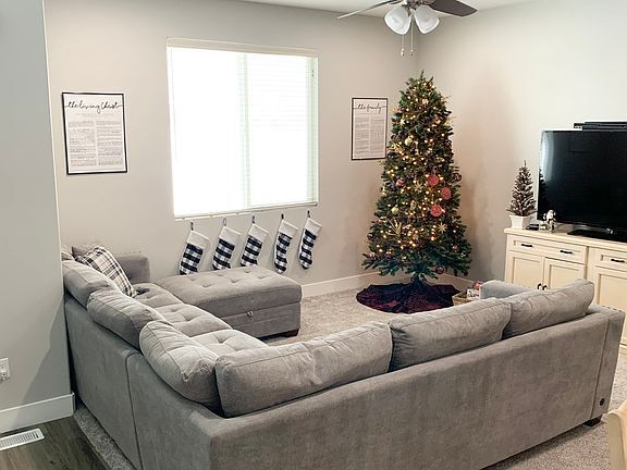 The perfect home for upscale living! Located in the sought-after Eagle Mountain community and in a quiet neighborhood. This lovely, modern townhome is move-in ready. The home is bright, spacious, and full of upgrades. Enjoy smooth gray paint throughout, beautifully designed contemporary doors, modern casing, and high-end tile in the bathrooms. The main floor features 9-foot ceilings, wood laminate flooring, canned lights, mud area with storage at the back door, and a half bath. Enjoy an open-concept kitchen, dining, and living area. The kitchen is a chef's dream with an abundance of light, lovely quartz countertops, a large island with bar seating, a roomy pantry, modern backsplash, white solid wood cabinetry, and a deep basin sink. The living room, stairs, and upper floor have high-quality, neutral carpet. Upstairs features wide hallways and an inviting, generously sized primary bedroom with an en suite and large walk-in closet. En suite has beautiful custom tiling throughout, a double vanity, a deep soaking tub and shower, vanity makeup lights, and plenty of storage. Two additional upstairs bedrooms each have a walk-in, deep storage closet. There is also a secondary full bath with custom tiling and a laundry room upstairs. The garage holds two cars and has a man-door access. There is an unfinished basement for storage, including a large cold storage room. Enjoy a large, clean park in the front yard with two playgrounds, huge field, and a convenient walking trail. Quiet neighborhood 2 minutes from Eagle Valley Elementary, 4 minutes from Macey's, and 6 minutes from Cedar Valley High School. Tons of business are also about to open up near Macey's. Inclusions: microwave, dishwasher, smart thermostat, tv wall mounts, and water softener. Full house, basement and garage lease. Perfect for families. One year term, then optional month to month as agreed to by all parties. All utilities are separate and the tenants will be expected to pay for them. Lease will start May 1st, 2026 where possible. No smoking or drugs allowed. No illegal activities. Optional pet rent. Mature/potty trained pets only. If tenant has a pet, there will be a $700 nonrefundable pet deposit and $75/pet per month additional charge. Up to a 2 pet maximum. Full contract will be signed before lease begins. Ask about other details. Must fill out an online application and pay the fee for a background check and credit check. Must prove steady income of at least 2x rent. Also, clean eviction and criminal record. All qualified applicants will be considered. It is up to landlord's full discretion which applicant will be accepted. Security deposit is due by the first day of of the leasing period. $400 of the security deposit will be nonrefundable. For questions on other fees such as late fees, damages, etc. see the full contract.