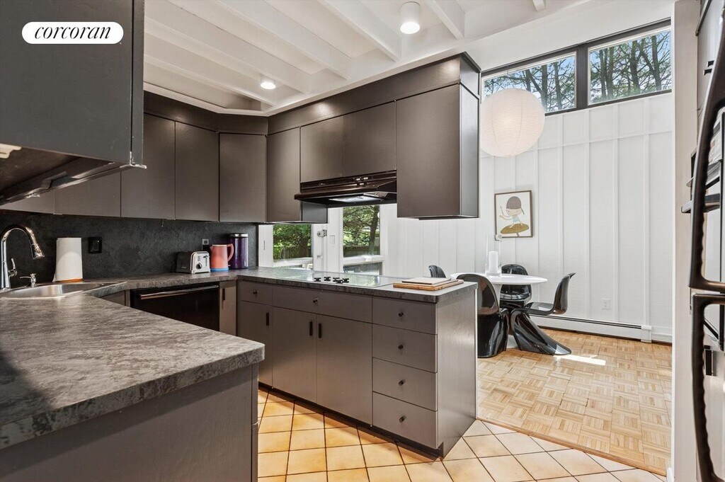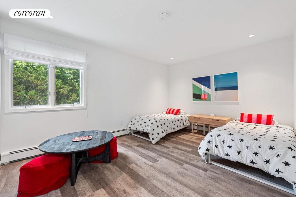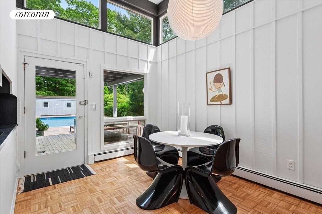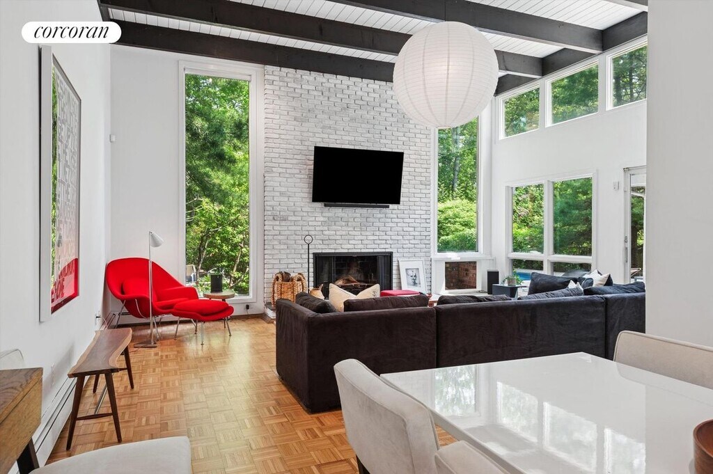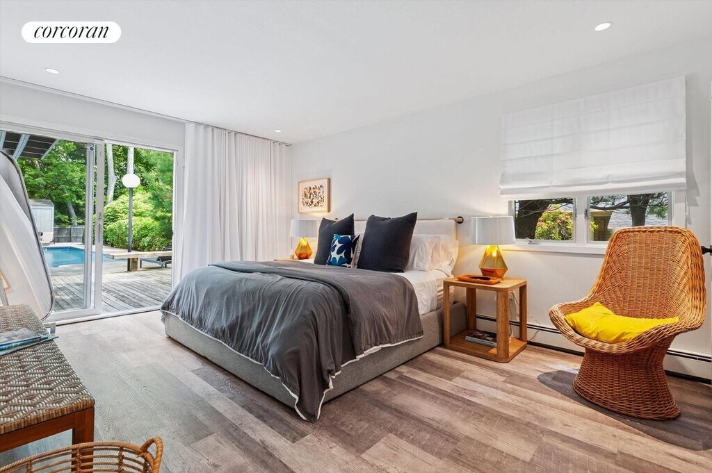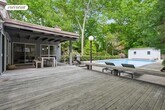 Airy and modern, 1A Beatrice Lane is an award winning mid century gem offering high style minutes from the beach. High ceilings, a 20x40 heated pool , and expansive outdoor living space are highlights of this 3 bedroom ,2 bath home located on a quiet cul de sac just a short distance from the bay. The three bedrooms feature a king with ensuite bath and dressing area, and two guest rooms which share a newly renovated bathroom. The spacious living room features a fireplace with stunning floor to ceiling whitewashed brick wall, with an adjoining dining area. The kitchen is efficient and well stocked with a breakfast nook overlooking the private and lush backyard bordered by evergreens and mature rhododendrons. Entertain on the deck with its gas grill and covered dining space for shade. Easy access to Hampton Bays' numerous dining options, including the newly renovated Canoe Place Inn, Rhumba, Cowfish and Canal Cafe. Enjoy waterfront dining within a mile and Ponquogue Beach just 6 minutes away. 1A Beatrice is the ideal beach house- also available Year Round, and for two weeks in the summer. [[Rental Registration # RP240811]]