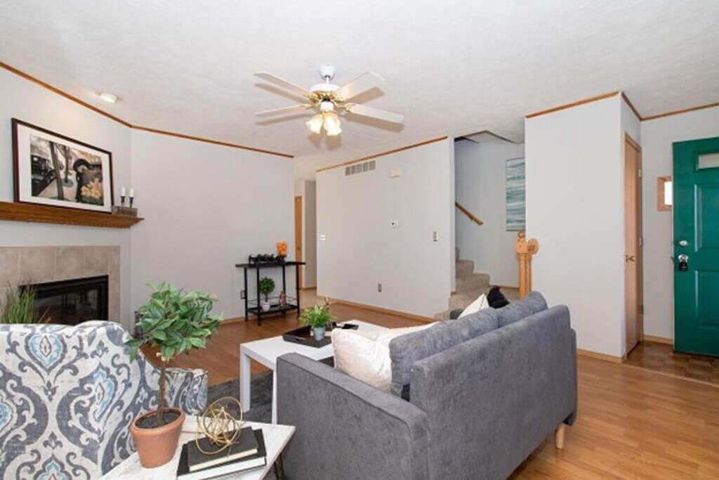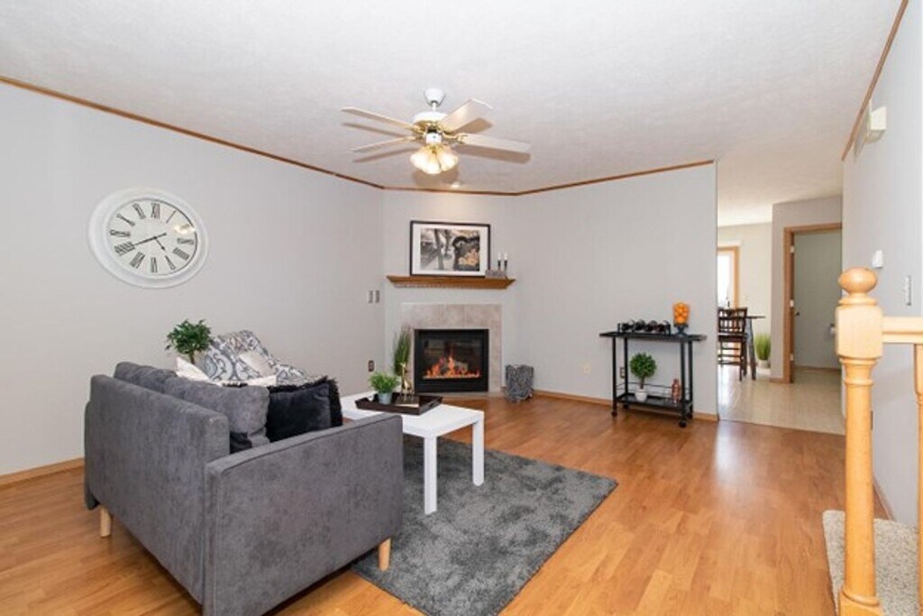 This townhome unit has two bedrooms and 1.5 bathrooms. There is an eat-in kitchen with a dishwasher/microwave, half bathroom, and living room on the main level. There is one full bathroom and two bedrooms on the second floor. The townhome unit has a patio, partially finished basement, central air conditioning, and washer/dryer provided in the unit. The basement has a family room and laundry with plenty of space for storage. The property is within the Unit 5 School District and conveniently located near shopping, dining, and parks in East Bloomington.