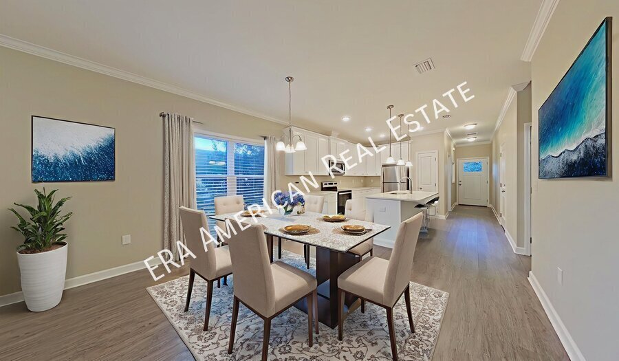 This 3 bedroom, 3.5 bath home features Crown molding, stainless light fixtures and luxury vinyl plank flooring through out. Kitchen includes all stainless appliances, oversized island and breakfast bar, undermount sink, pantry and plenty of cabinet space. Guest bath and Master are downstairs, Master bedroom has walk in closet and large bath features decorative tiled shower. Remaining bedrooms and baths are located on the second floor with three large linen closets and a loft area with wet bar. 120 volt charging stations in the garage. Lawn care provided. No smoking! No pets. ERA American Real Estate residents are enrolled in the Resident Benefits Package (RBP) for $50/month which includes HVAC air filter delivery (for applicable properties), Credit Building to help boost your credit score with timely rent payments, Liability Insurance, $1M Identity Protection, Utility Concierge Service making utility connection a breeze during your move-in, our best-in-class resident rewards program, and much more! More details upon application. 1 Car Garage 2 Story Home 2 Story Unit Auto Garage Door Opener Brick Siding Central A/C Central Heat (Electric) Double Closets Double Vanity Kitchen Island Master Bedroom Walk In Closet Pets Allowed Range Hood Smoke Detectors Stove (Electric) Stove/Oven (Elct.) Vinyl Flooring Walk In Closets Washer/Dryer Hookup Washer/Dryer Hookups Water Heater Electric Wet Bar Window Treatment (Some) Yard Maintenance Provided