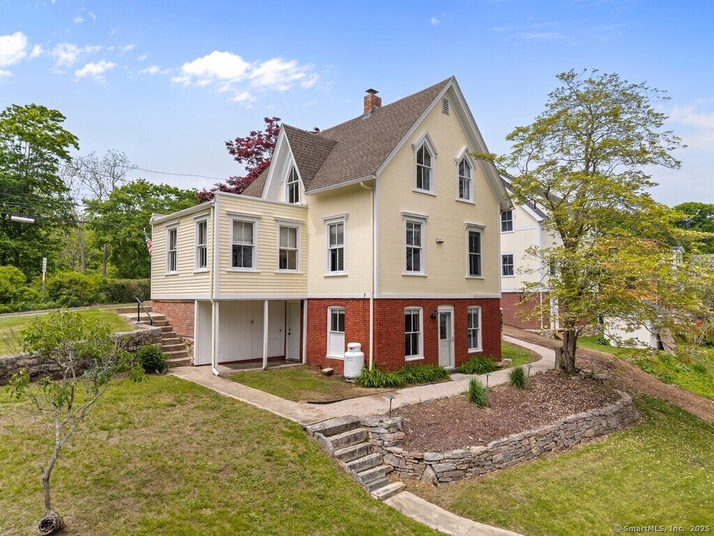 Call for Availability - For Rent in the Heart of Downtown Mystic - Enjoy sweeping Mystic River views just steps from shops, dining, and the waterfront. The main home boasts an open floor plan, refinished hardwood floors, a new roof, rebuilt chimney with liner, new gutters, fresh paint, upgraded 200-amp electrical service, and a 350+ sq. ft. walkout lower level with laundry and flexible office/guest space. The landscaped grounds feature granite steps, stone retaining walls, and a private stairway leading directly to downtown Mystic. Move-in ready with timeless historic charm. MLS# 24128999