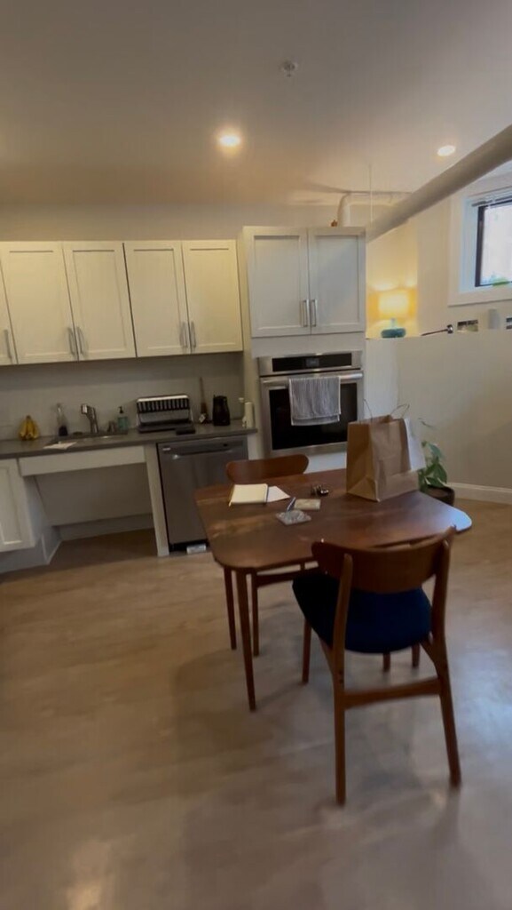 Well lit and updated below level one bedroom. I've been there myself and it doesnt feel like its a basement unit. All the pipes are high. I'm 6'4 and had no trouble. Unit also has storage space in the apartment. Bathroom is updated and sleek. Tenant spoke of hot water pipe running through apartment for the entire building. Says it gave off a lot of heat and as smaller women never had to turn on the heat in winter.