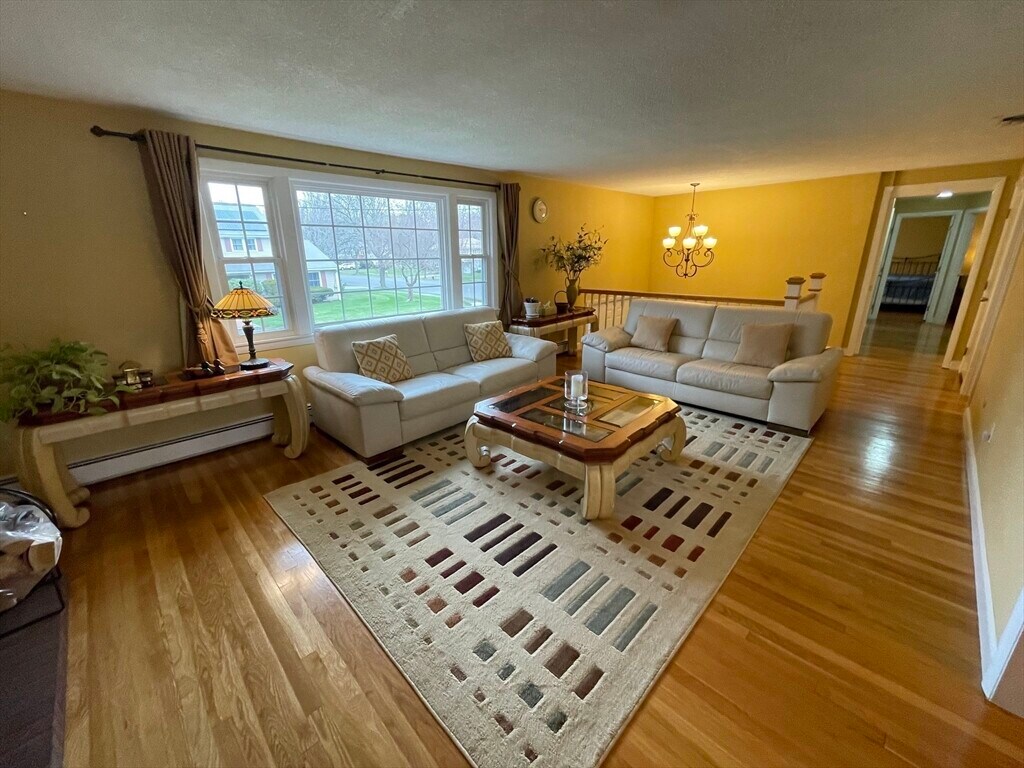 Renovated and sun-filled,four-bedroom,two-and-a-half-bath,split entry home with a two-car garage located steps from Bowman Elementary School. The main floor features hardwood floors,a welcoming living room with a fireplace,a Sunny eat-in kitchen with stainless steel appliances,and a formal dining room with sliders leading to the renovated deck overlooking the gorgeous lawns. The walk-out lower level features a fire-placed family room,the fourth bedroom,and a half bathroom. Several thoughtful renovations include a renovated kitchen,bathrooms,and windows,and the addition of central air on the main floor. Enjoy outdoor entertaining on the beautiful deck and the paver patio. Laundry with washer & dryer,a 2-car garage,and plenty of storage,including a storage shed. Easy access to major routes,public transportation,and a short walk to Wilson's farms. Move-in ready! Simply unpack! MLS# 73489563