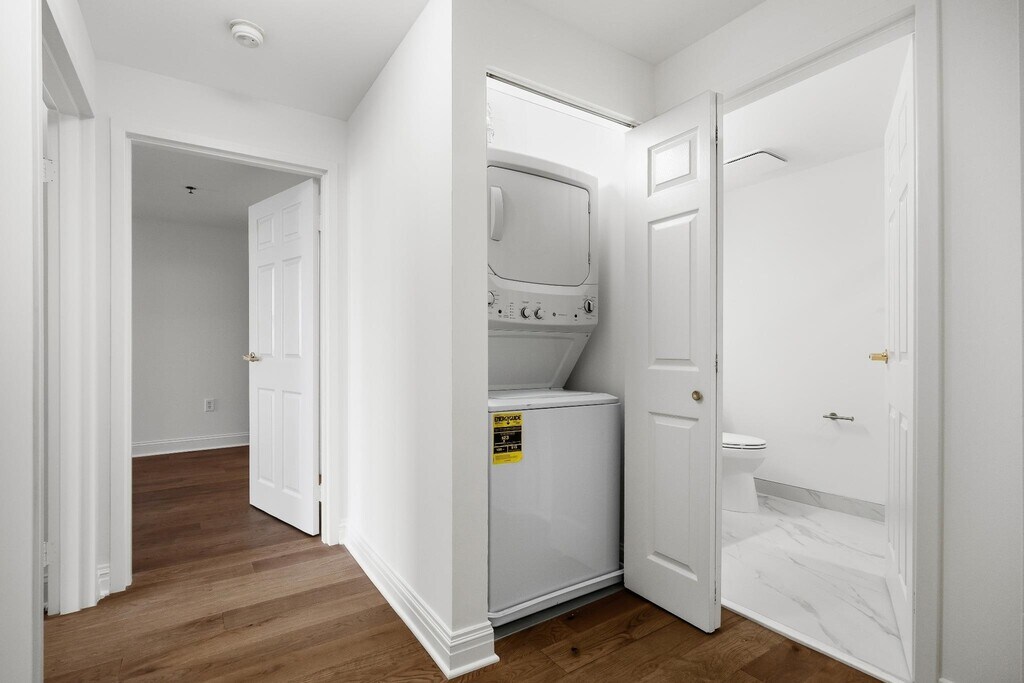Be the first to live in this fully renovated 2-bedroom home with a private balcony and stunning NYC views in the luxury waterfront community of 2 Constitution Ct.! The fully renovated chef's kitchen has all-new white cabinetry, LG stainless steel appliances, and custom marble backsplash. The spacious primary bedroom includes an entrance to your very own private balcony with incredible views, a walk-in closet, and an ensuite bathroom. Both bathrooms have been completely renovated with all new fixtures. The secondary bedroom is large with a walk-in closet. Also included are wide plank hardwood floors, crown molding, an in-unit washer/dryer, and window treatments. The building's amenities include 24/7 concierge, fitness center, and a rooftop courtyard. Located conveniently next to the NYC ferry, bus stop, Pier 13, parks, shops, restaurants, and everything uptown Hoboken has to offer. Move in 4/1/26.
