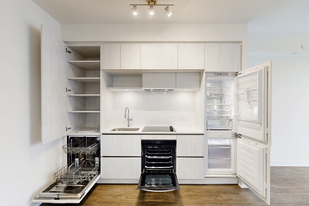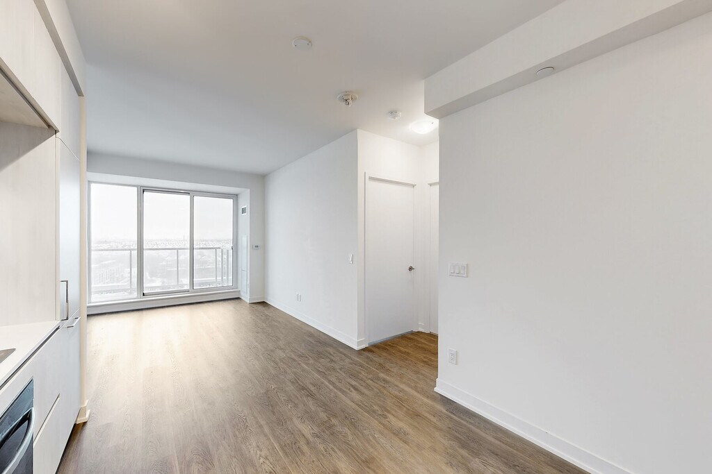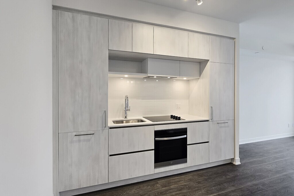 New, be the first to live in this south facing, 1 bedroom condo, approximately 573 square feet + 100 square feet balcony (as per builder's plan) and 9 feet ceilings, clear view, bright layout, modern integrated appliances, large ensuite laundry and much more. Includes 1 parking, Residents large front walk-in closet. Residents can enjoy: fitness centre, theatre room, business room, recreation room, piano room, rooftop area with communal BBQ in summer months. Tenant pays tenant's insurance and Hydro + Water through Metergy.