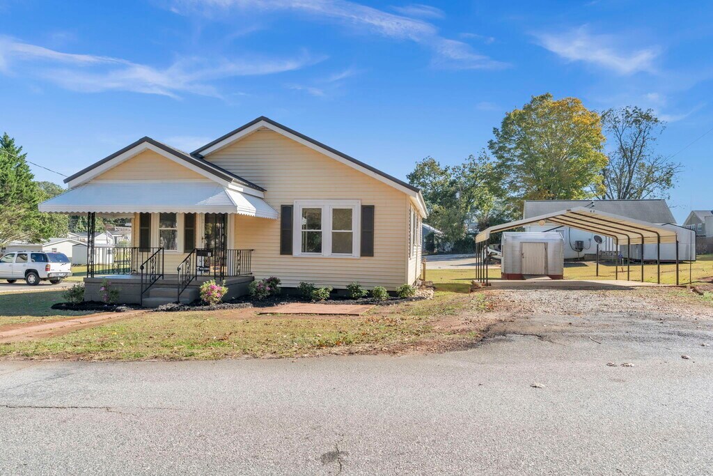 Charming 2 Bedroom Home in the Heart of Pelzer! Welcome to this beautifully renovated 2-bedroom, 1-bath home just a short stroll from Main Street in Pelzer, where you can enjoy local restaurants, cozy coffee shops, unique boutiques, and the town park. This inviting home features a welcoming front porch—perfect for morning coffee or relaxing evenings—and sits on a large, level lot offering plenty of outdoor space. A double car carport provides convenient covered parking, and two spacious storage buildings give you ample room for tools, hobbies, or seasonal items. Inside, you'll find a refrigerator, stove, washer and dryer all included—for a move-in ready experience. With modern updates throughout and a prime walkable location, this home combines small-town charm with everyday comfort. Application approval, ID, proof of income required.