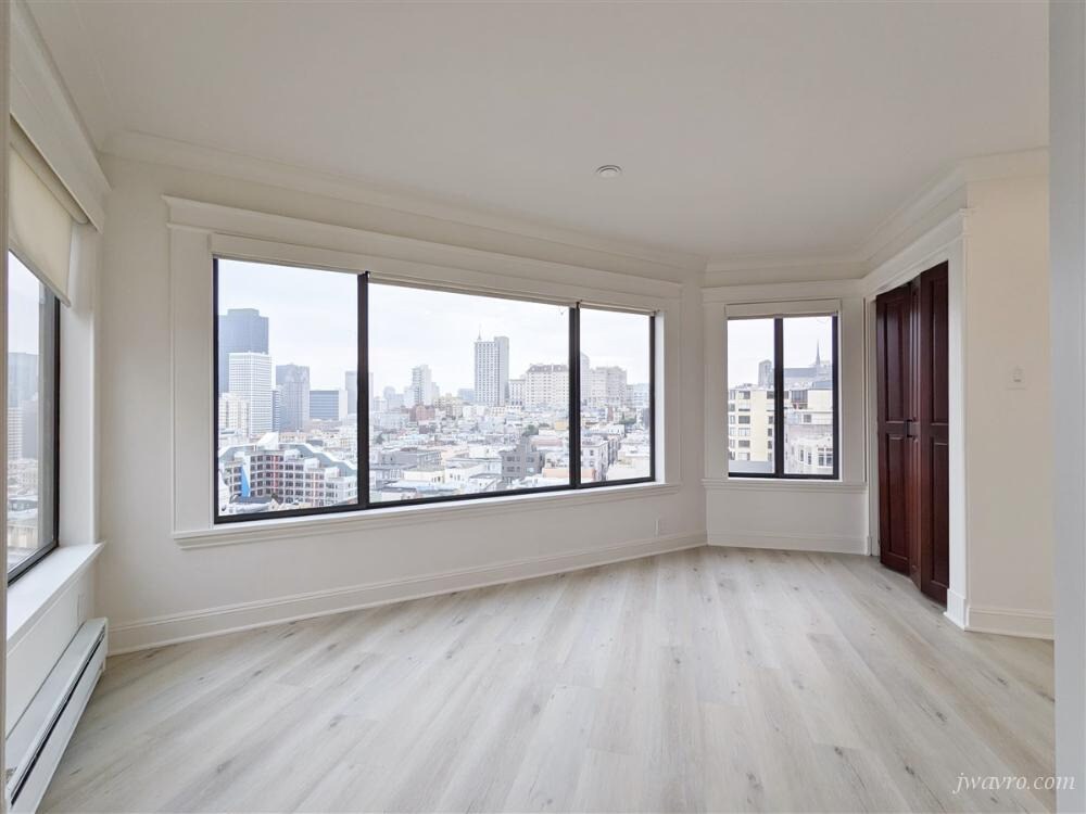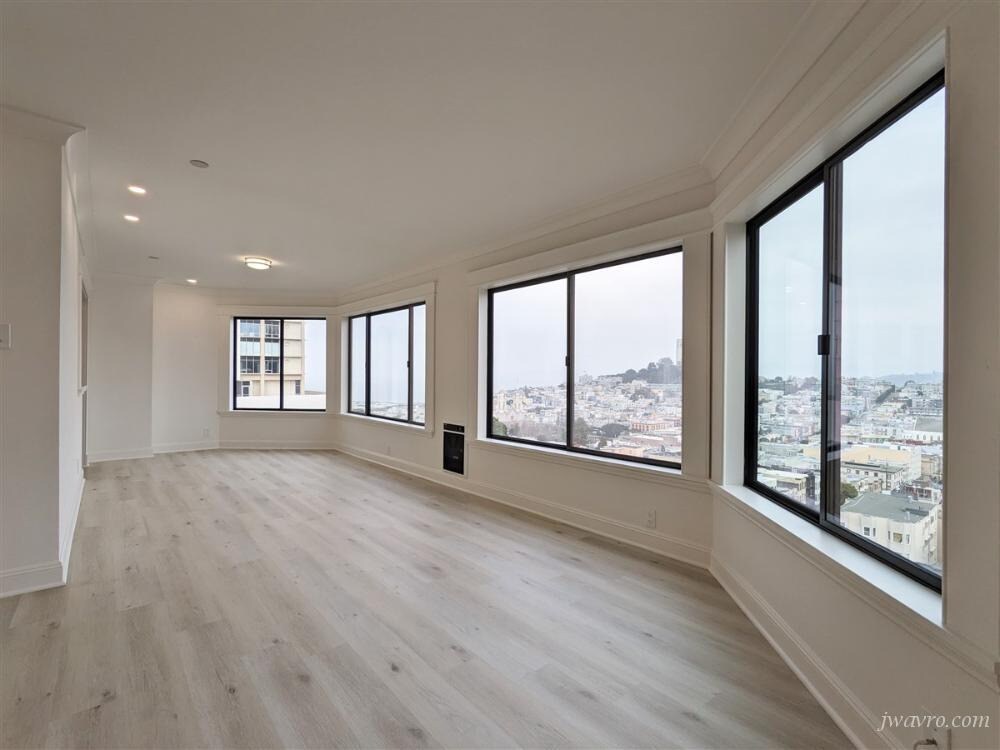 Welcome home to this special property on a cul de sac in popular Russian Hill close to North Beach and the Financial District!Offered unfurnished.**Details:**** Situated at the top of the 60-unit Landmark building** Approximately 1092sf** Very homey feel** Elevator goes directly to the condo** Very sunny and bright** Open floor plan** Unobstructed views spanning the Bay, Coit Tower, and Downtown** Remote-controlled motorized shades throughout** Living room with a decorative fireplace** Large dining area** Sedona plank flooring throughout** Remodeled kitchen with beautiful cabinetry and stone counter tops, featuring:>> Dual built-in ovens, built-in cook top, custom-paneled Sub-Zero refrigerator, dishwasher, in-sink disposal** Well-apportioned bedrooms with great views** Remodeled stone bathroom with dual sinks** Good closet space throughout**Building features:**** Unique hillside complex** Sunny roof deck with sweeping views** Tennis court**Location:**** Quintessential San Francisco** Adjacent to the beautiful Ina Coolbrith Park** Easy access to Downtown, Financial District, and SOMA** Close to corporate shuttle stops** Within walking distance to North Beach, Fisherman's Wharf, the Financial District, and Chinatown** Easy access to the northbound 101 freeway**Other notes:**** Garaged tandem parking for 2 cars for $350/month** Laundry facility in the building** Up to 2 pets will be considered (25lb is the maximum weight per pet allowed per HOA rules). A declawed cat will be considered.** The included utilities are: water, sewer and garbage** 24 hour quest parking availableAvailable around November 10, 2025.