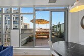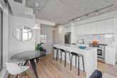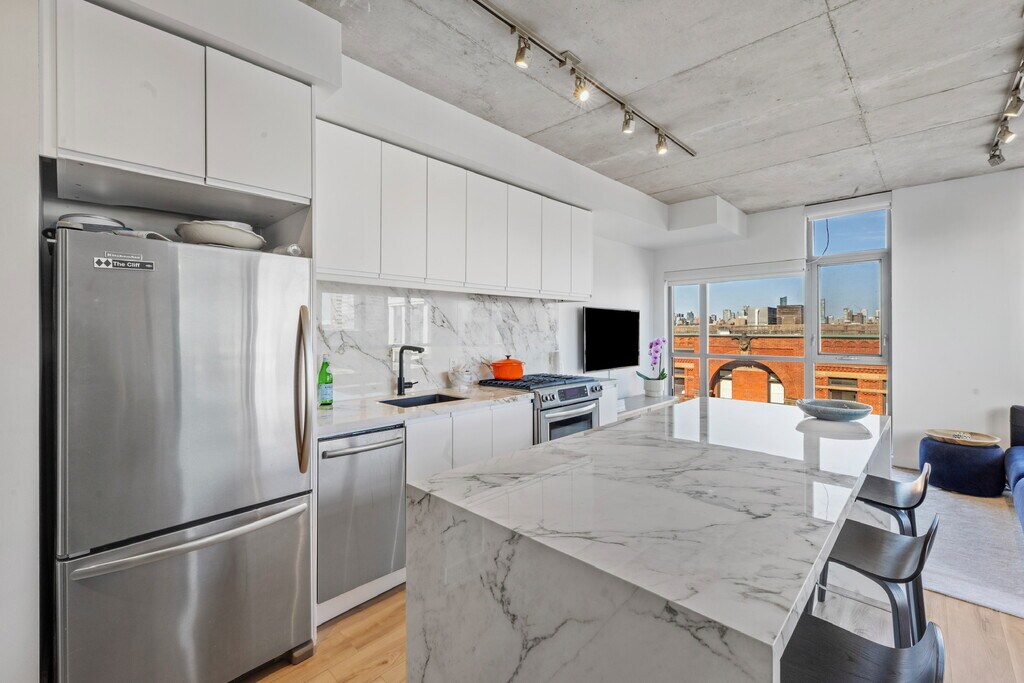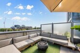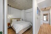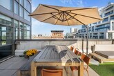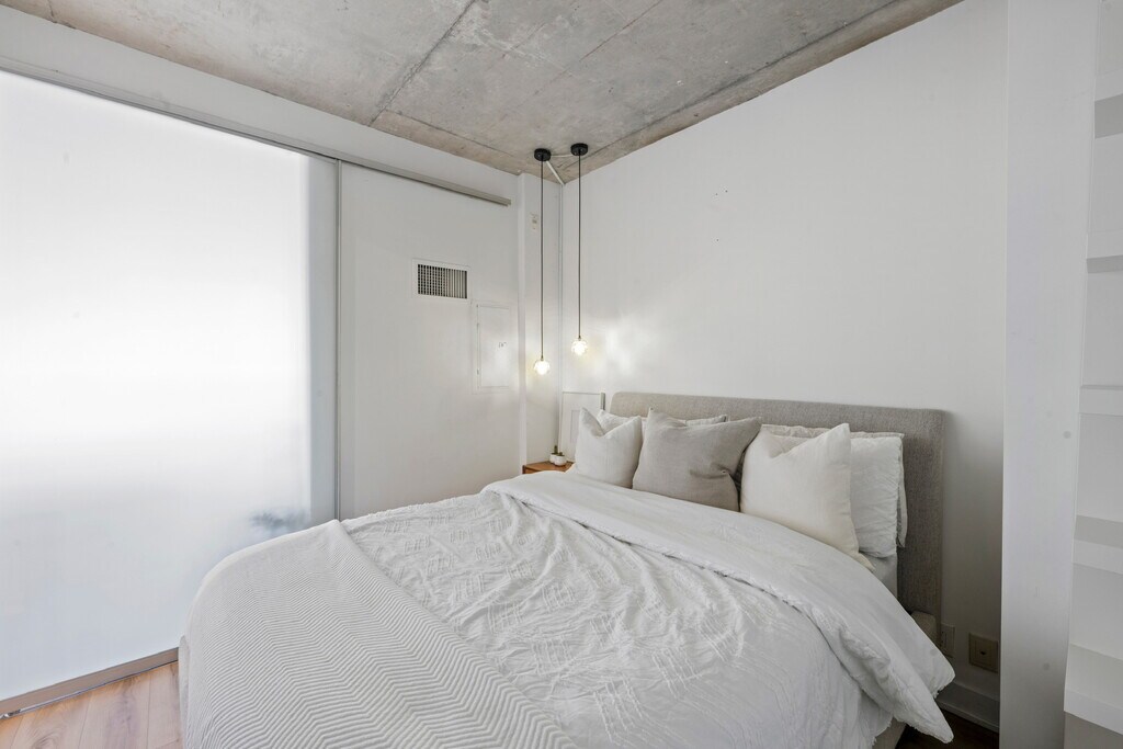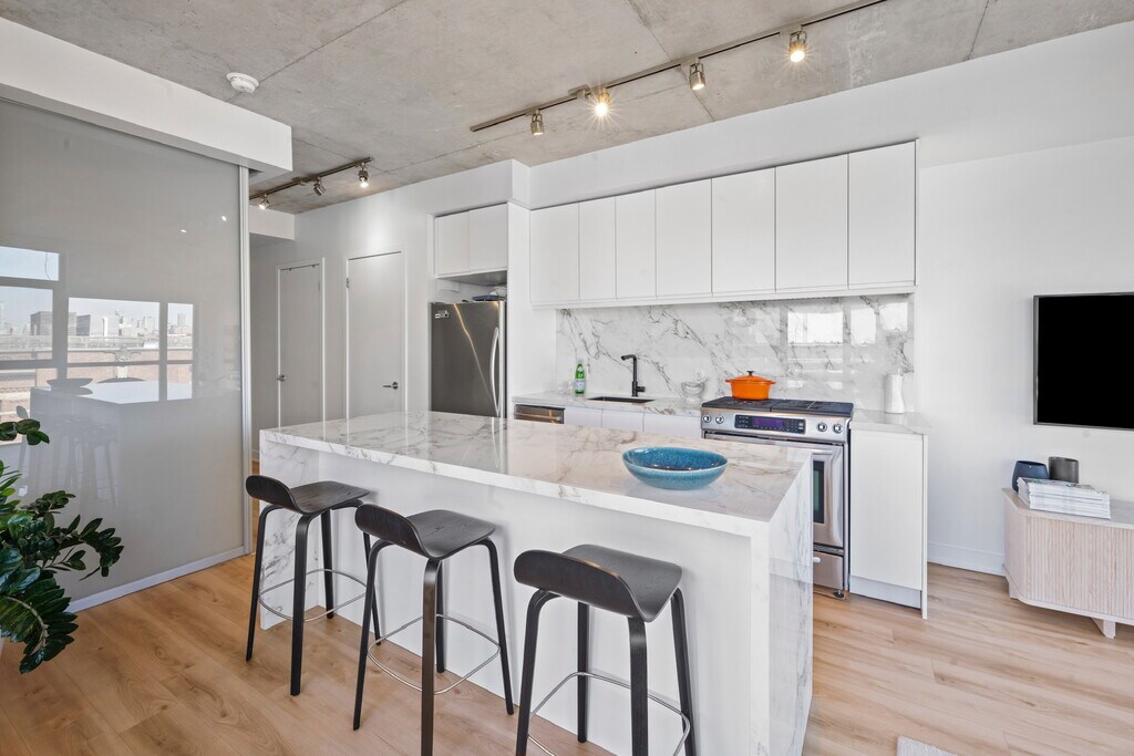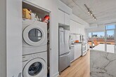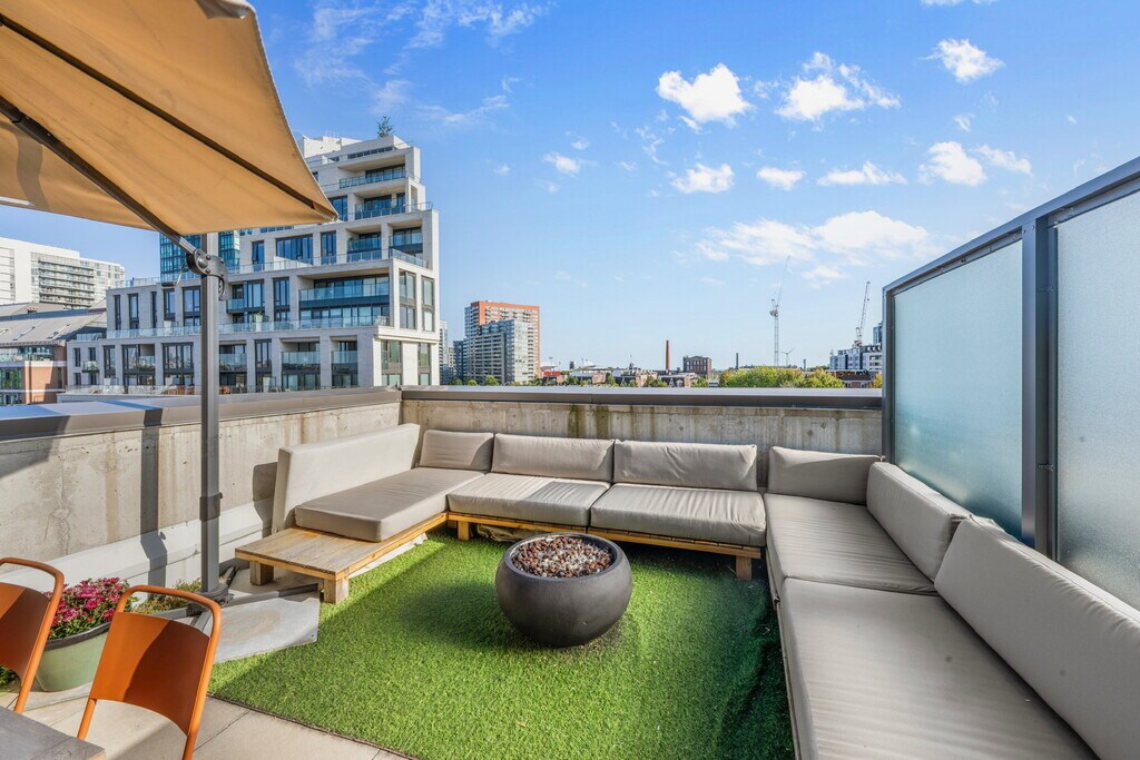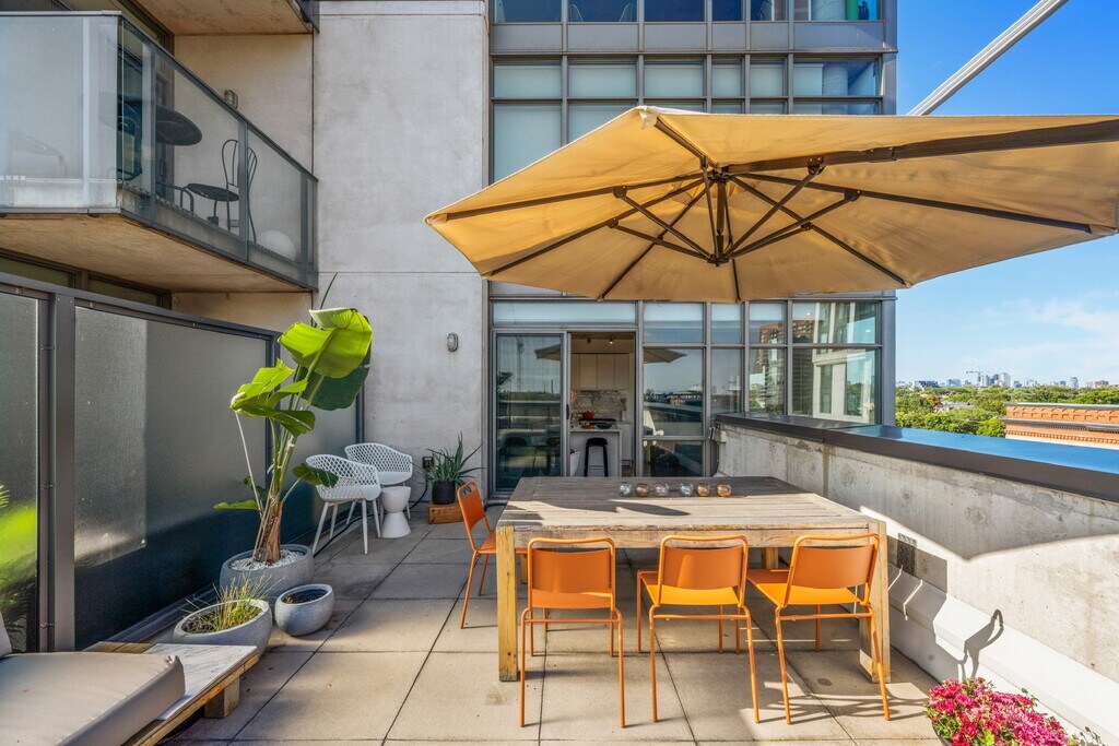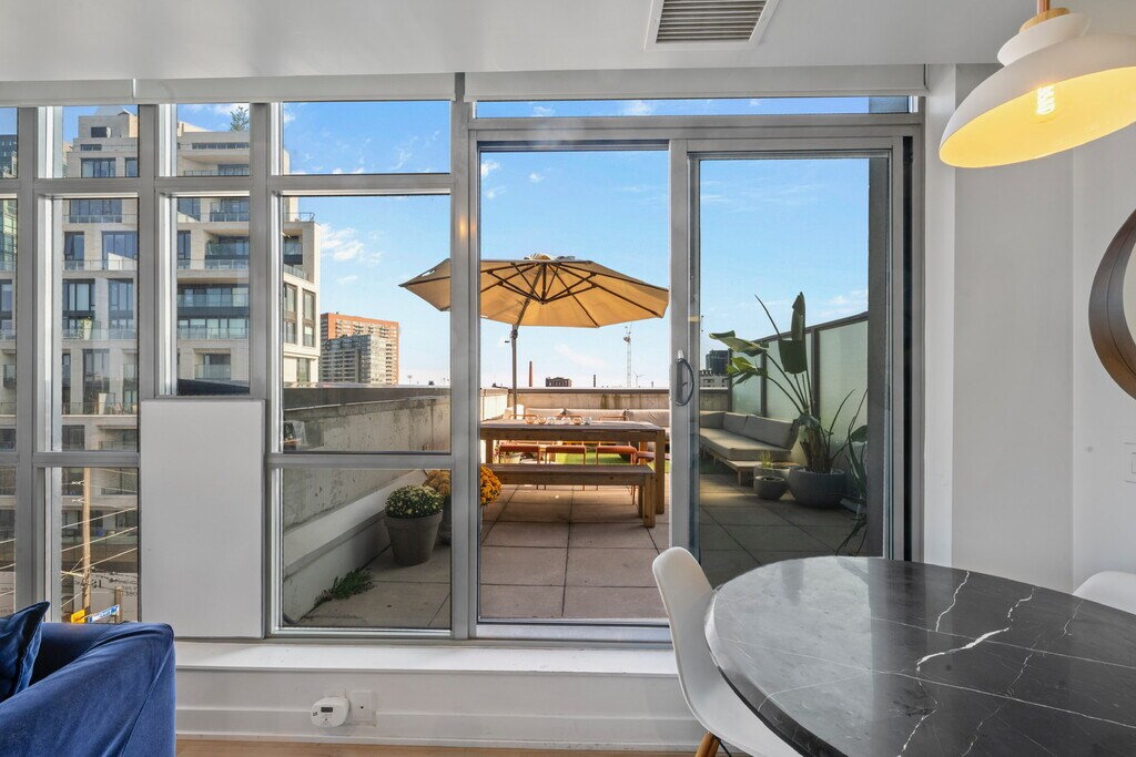Experience the pinnacle of downtown luxury in this exceptional, fully furnished corner loft, located atop a chic 8-story building in the heart of Toronto's bustling Queen West neighborhood. This loft is a dream for those who love to cook and entertain, featuring a beautifully appointed kitchen with Italian porcelain details, a six-foot waterfall island, and premium appliances, including a gas stove. The expansive floor-to-ceiling windows not only flood the space with light but also offer sweeping views of the cityscape. The bedroom is a tranquil retreat equipped with remote-controlled blackout blinds for a serene sleep environment. The modern bathroom showcases an elegant black and white marble vanity, superior lighting, a six-foot mirror, and a sophisticated Toto Japanese toilet. Extras include a stunning 300 sqft private terrace, perfect for soaking up the southeast sun and enjoying the colorful sunsets. This outdoor haven comes with a gas line fire pit, making it an ideal spot for hosting summer parties or cozy evenings under the stars. This fully furnished loft offers a seamless blend of comfort, style, and luxury, making it a rare find in the city. Unparalleled convenience, mere steps from essential amenities like grocery stores, TTC access, and the Ossington area. Indulge in nearby culinary delights such as La Banane, Mamakas, and Badiali Pizzeria. Comes with one underground parking spot