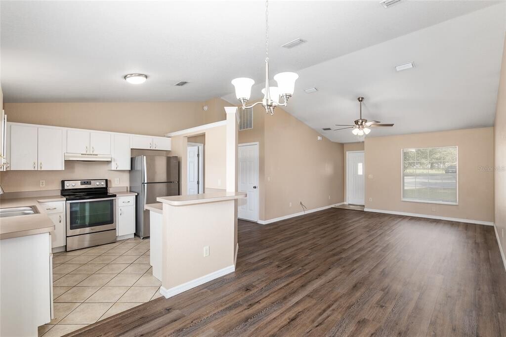 For Rent: Fenced in,pet friendly,Charming 3/2/2 concrete block stucco home nestled on a cul-de-sac w/ NO neighbors on either side. FULLY chain link fenced in backyard on an oversized 0.32 acre lot. NEWER metal roof in 2022! Tastefully updated w/ newer LVT vinyl flooring throughout living areas & bedrooms,newer kitchen appliances,newer interior paint throughout. Newer blinds,ceiling fans throughout. New sinks and faucets in both bathrooms. Open split bedroom floor plan w/ vaulted ceilings. Kitchen has plenty of cabinet & countertop space & a breakfast bar. Great place to call home and make memories. Long term comfortable home for rent. Owner has no plans to sell. 1 pet allowed,up to 30 pounds with non-refundable pet fee of $250 plus $250 pet deposit and $100 pet approval fee. Cannot be on any dangerous breed list. First,last,and security required = $4,875. $60.00 application fee for the first adult,$40.00 for each additional adult. Proof of income must be 3x the rent amount in gross income before taxes are taken out = $4,875 per month. Renter's insurance prepaid for 1 year required. NO SMOKING. Don't miss your chance to see this home and schedule your tour today! MLS# OM710584
