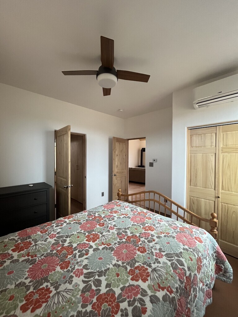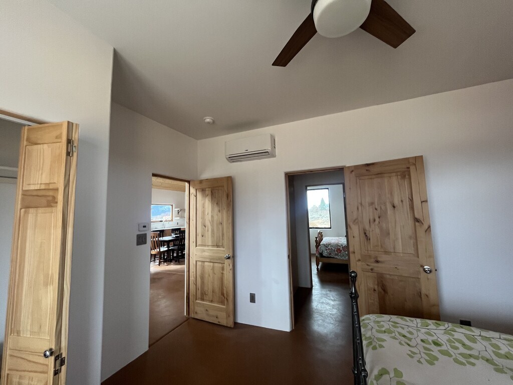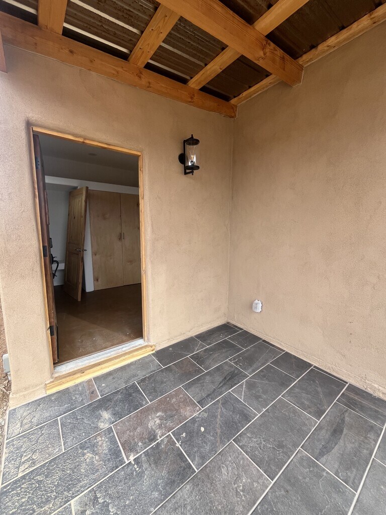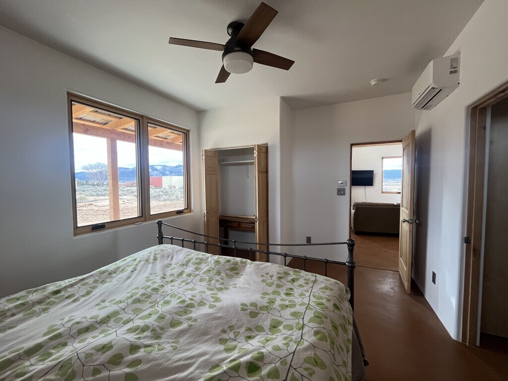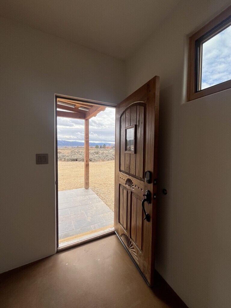 For rent is a brand new home located in a great area on the north side of Taos. This two bedroom, one and one half bathroom home is being offered partially furnished. The floor plan is open and the ceilings are high creating a sense of spaciousness. The two bedrooms share an ensuite Jack and Jill bathroom with a deep tub/shower. The well appointed kitchen boasts quartz countertops and open shelving. There is ample pantry storage as well as storage in the laundry center located behind closest doors in the entry way. The home has mini-splits providing heat and cooling in both bedrooms and in the living room. Additional heat is radiant floor powered by a natural gas on-demand water heater and a gas stove. Stained concrete floors throughout. The many large windows look out on mountain and mesa views. A covered porch faces Taos Mountain and will be a great outdoor space for eating, entertaining and stargazing. Window treatments, landscaping and a shed are in the works. Tenant is responsible for utilities: NM Gas, Kit Carson Electric, Waste Management trash service and internet (TBD). Well water and septic are included. No Smoking; a small mature dog may be considered (no puppies, no cats, no exceptions). This property is being represented by Digs Property Management. Minimum 1 year lease; deposit equal to one month's rent due at lease signing; first and last month's rent due at move in, no exceptions. Response to inquiries and showings by appointment will be accommodated M-F, 9-4. For rent is a brand new home located in a great area on the north side of Taos. This two bedroom, one and one half bathroom home is being offered partially furnished. The floor plan is open and the ceilings are high creating a sense of spaciousness. The two bedrooms share an ensuite Jack and Jill bathroom with a deep tub/shower. The well appointed kitchen boasts quartz countertops and open shelving. There is ample pantry storage as well as storage in the laundry center located behind closest doors in the entry way. The home has mini-splits providing heat and cooling in both bedrooms and in the living room. Additional heat is radiant floor powered by a natural gas on-demand water heater and a gas stove. Stained concrete floors throughout. The many large windows look out on mountain and mesa views. A covered porch faces Taos Mountain and will be a great outdoor space for eating, entertaining and stargazing. Window treatments, landscaping and a shed are in the works. Tenant is responsible for utilities: NM Gas, Kit Carson Electric, Waste Management trash service and internet (TBD). Well water and septic are included. A small mature dog may be considered (no puppies, no cats, no exceptions). This property is being represented by Digs Property Management. Minimum 1 year lease; deposit equal to one month's rent due at lease signing; first and last month's rent due at move in, no exceptions. Response to inquiries and showings by appointment will be accommodated M-F, 9-4.