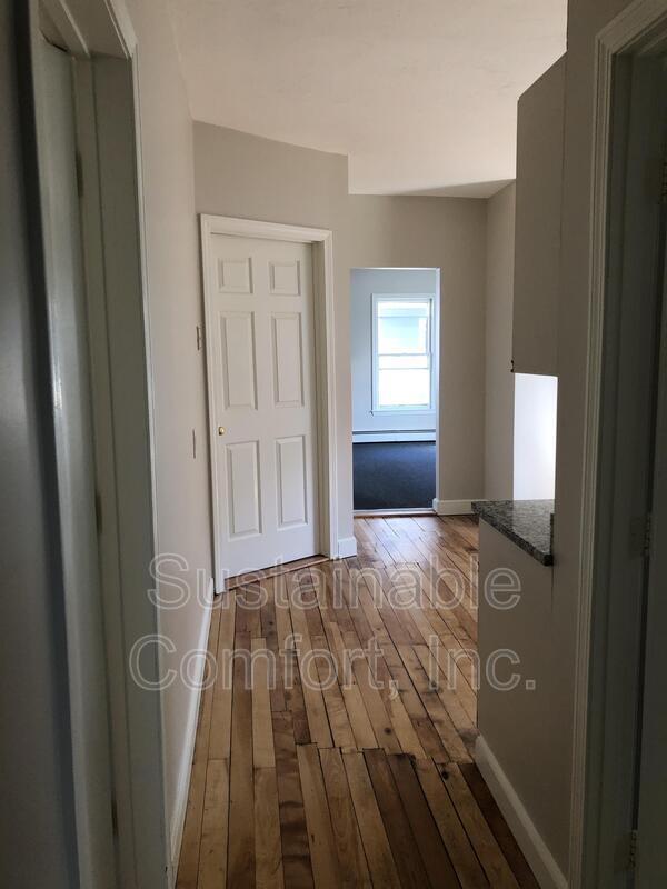 Recently renovated third floor three bedroom unit. Includes off-street garage parking space and driveway space, shared coin-op laundry room and private balcony. Tenants are responsible for gas heat and electricity.