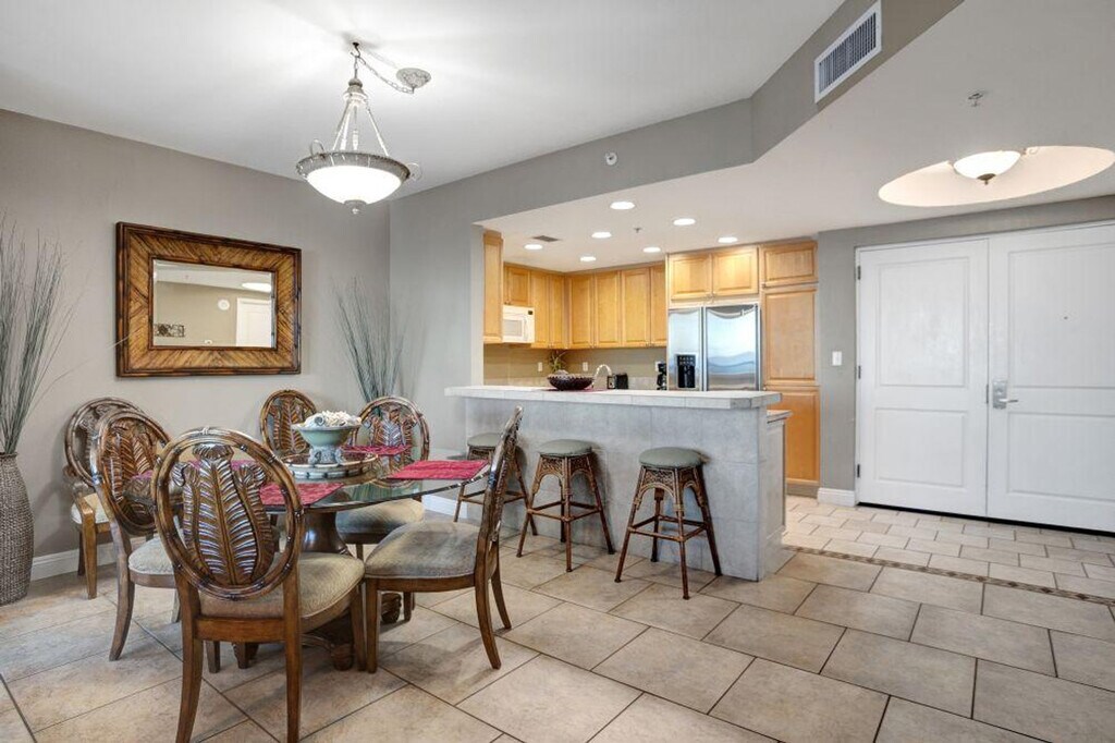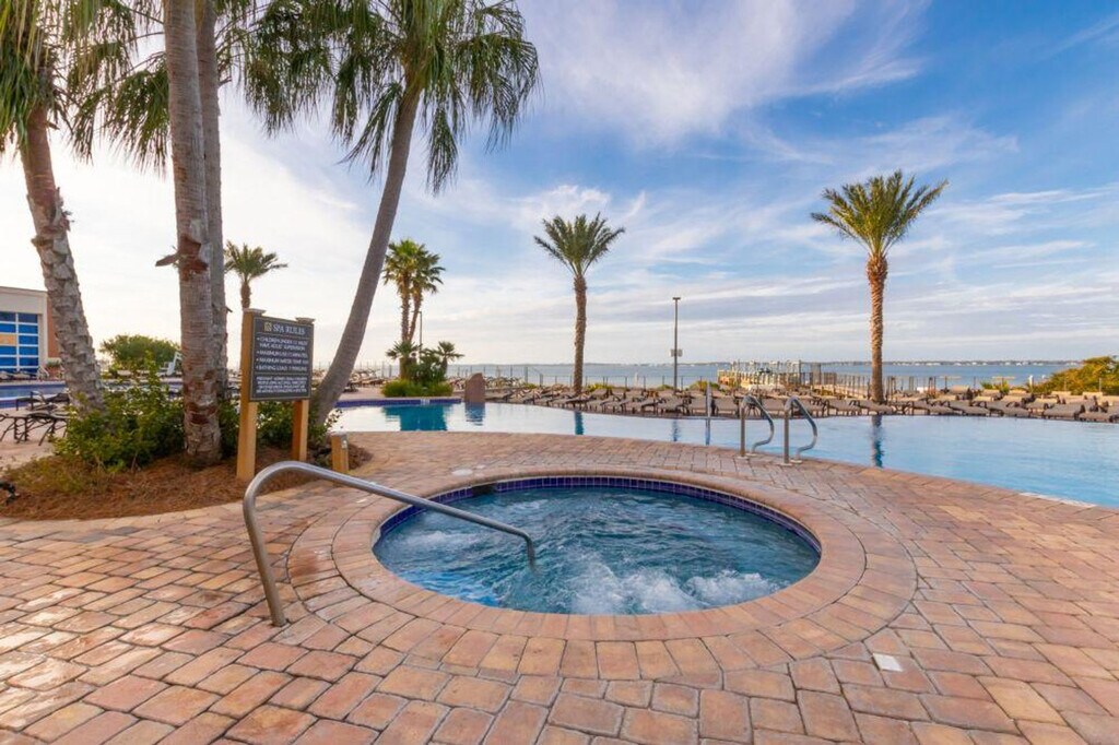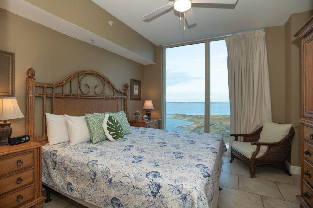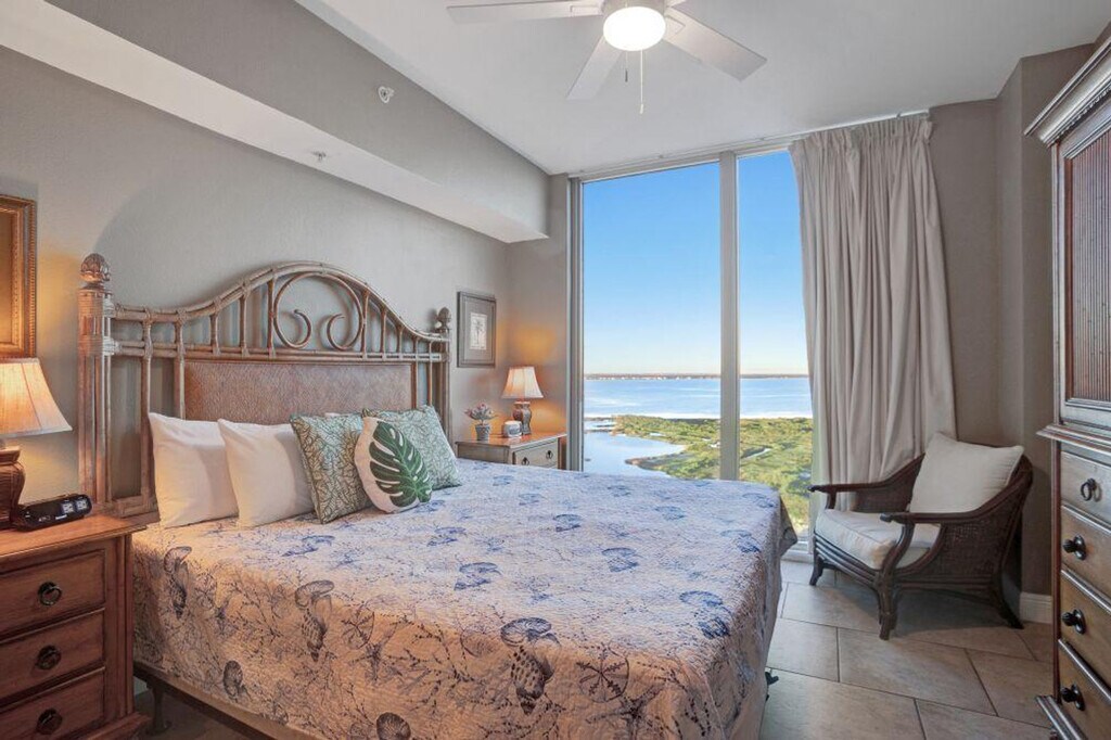 Enjoy incredible views of both the Gulf of Mexico and Santa Rosa Sound from this beautifully designed condo at Portofino Island Resort, perfectly located on Pensacola Beach. Situated on the 16th floor, this home offers an ideal place to relax and recharge. Feel at home in this Mediterranean-inspired condo. This fully furnished condo features a large living room with custom designs and interiors, floor-to-ceiling glass windows and doors leading to the balcony, and a fully equipped gourmet kitchen. The large master suite includes a big closet and sliding glass doors to the balcony. Guests have access to Portofino’s great amenities, including multiple pools, a fitness center, a spa, tennis center, on-site coffee shop, heated pool and hot tub in each of the five towers, indoor heated pool, and access to the Lifestyle Center Pool Deck with two heated outdoor infinity pools and two hot tubs. The property also has a resort-wide tram and watersports equipment for rent. Free parking is available for up to 2 vehicles. An additional daily amenity fee will be charged upon check-in at the Front-Desk: January 1 to March 12: $10 + tax, March 13 to May 20: $15 + tax, May 21 to August 9: $20 +tax, and August 10 to December 31: $10 + tax. Located on the doorsteps of the Gulf Islands National Seashore, this condo is near dining and shopping at the Portofino Boardwalk and Adventure Cove Waterpark (Soundside). Pets are not allowed, and any violation of this policy will incur a $200 fine. The home has a maximum occupancy of guests, and renters who exceed the occupancy limit are subject to eviction. Smoking is prohibited in the unit and on the balcony, and any violation of the smoking policy will incur a $250 fine plus the cleaning costs necessary to remove smoke odors. Quiet hours are observed from 10 pm to 8 am, and violators will be charged a $200 fine. No parties or events are allowed, and violators will be charged a $500 fine. Guests must be at least 22 years of age to make a reservation and provide a state identification card or driver's license copy upon booking. [SI]