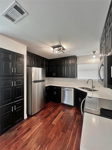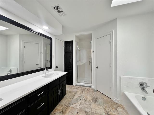 Stunningly updated single-family home with modern finishes! Welcome to your beautifully remodeled 3-2-2 in Mansfield! This single-story brick residence offers a perfect blend of classic charm and modern style, making it the ideal place for comfortable living. Step inside to an inviting and brightly lit space featuring gorgeous hardwood-style flooring that runs throughout the main living areas and bedrooms. The spacious living room is the heart of the home, boasting tall ceilings, recessed lighting, and a cozy brick fireplace. Crisp and clean kitchen showcases sleek black, shaker-style cabinetry that provides abundant storage. It comes fully equipped with stainless steel appliances and quartz countertops. Well-lit with natural light, the adjacent dining area makes entertaining a breeze. Generously sized bedrooms, all with ceiling fans. The primary bathroom has been completely modernized, offering a luxurious setup with a double-sink vanity, a large, custom-framed mirror, and a separate glass-enclosed shower. The second full bath continues the stylish theme with a modern vanity and clean white tile work. Out back, you'll find a covered patio that overlooks the sizable backyard, which is fully fenced—creating an excellent space for outdoor activities. The surrounding mature trees offer lovely shade and a peaceful setting. All nestled on a cul-de-sac, ready for move-n soon! Owner must approve all pets.