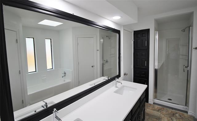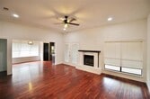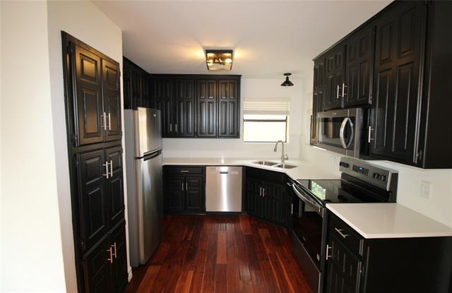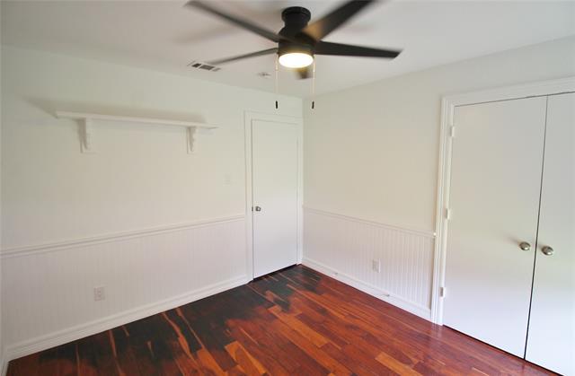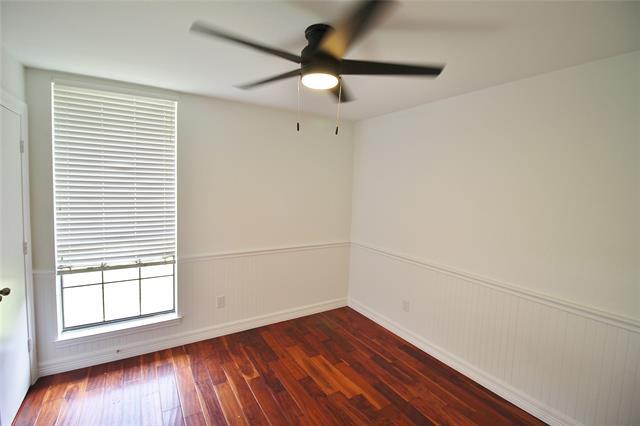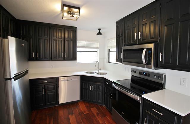 Stunningly updated single-family home with modern finishes! Welcome to your beautifully remodeled 3-2-2 in Mansfield! This single-story brick residence offers a perfect blend of classic charm and modern style, making it the ideal place for comfortable living. Step inside to an inviting and brightly lit space featuring gorgeous hardwood-style flooring that runs throughout the main living areas and bedrooms. The spacious living room is the heart of the home, boasting tall ceilings, recessed lighting, and a cozy brick fireplace. Crisp and clean kitchen showcases sleek black, shaker-style cabinetry that provides abundant storage. It comes fully equipped with stainless steel appliances and quartz countertops. Well-lit with natural light, the adjacent dining area makes entertaining a breeze. Generously sized bedrooms, all with ceiling fans. The primary bathroom has been completely modernized, offering a luxurious setup with a double-sink vanity, a large, custom-framed mirror, and a separate glass-enclosed shower. The second full bath continues the stylish theme with a modern vanity and clean white tile work. Out back, you'll find a covered patio that overlooks the sizable backyard, which is fully fenced—creating an excellent space for outdoor activities. The surrounding mature trees offer lovely shade and a peaceful setting. All nestled on a cul-de-sac, ready for immediate occupancy! Owner must approve all pets.