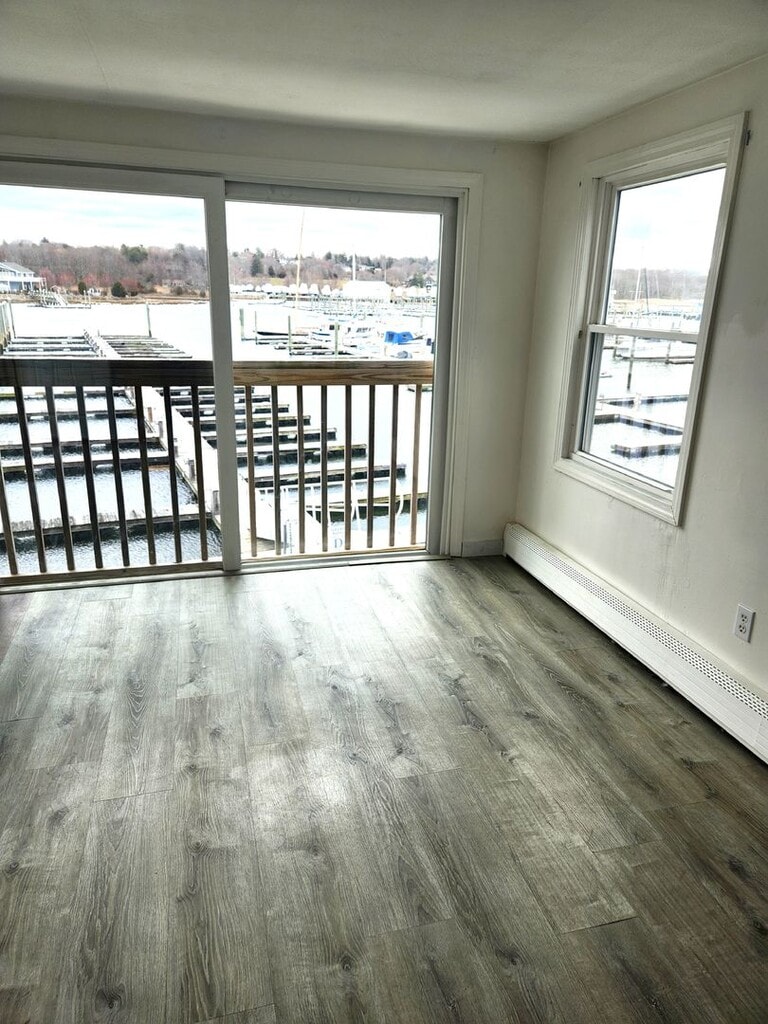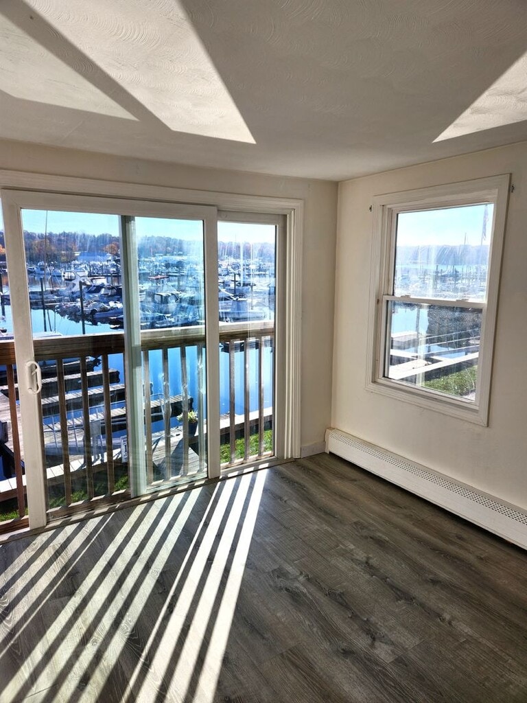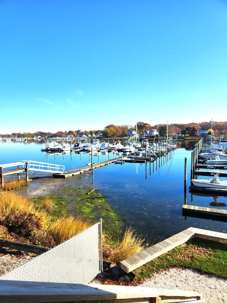 This 2nd floor unit has almost 800 sq. feet of beautiful living space! • Located right in Fairwinds Marina above office, overlooking boat yard, with private tenant entrance • Includes two full beds with a double closet and built in shelving • Eat-in kitchen with laminate flooring and natural lighting • Bright and sunny family room with lofted/beamed ceilings, and skylights • Sliding glass doors off of family room with beautiful ocean views • Spotless bath with stand-up shower and large linen storage area • No pets • Plenty of off-street parking right next to house • WIFI included • Great waterfront location, right in boat yard, walking distance to many Oakland Beach attractions and just minutes to 95, 295 and TF Green