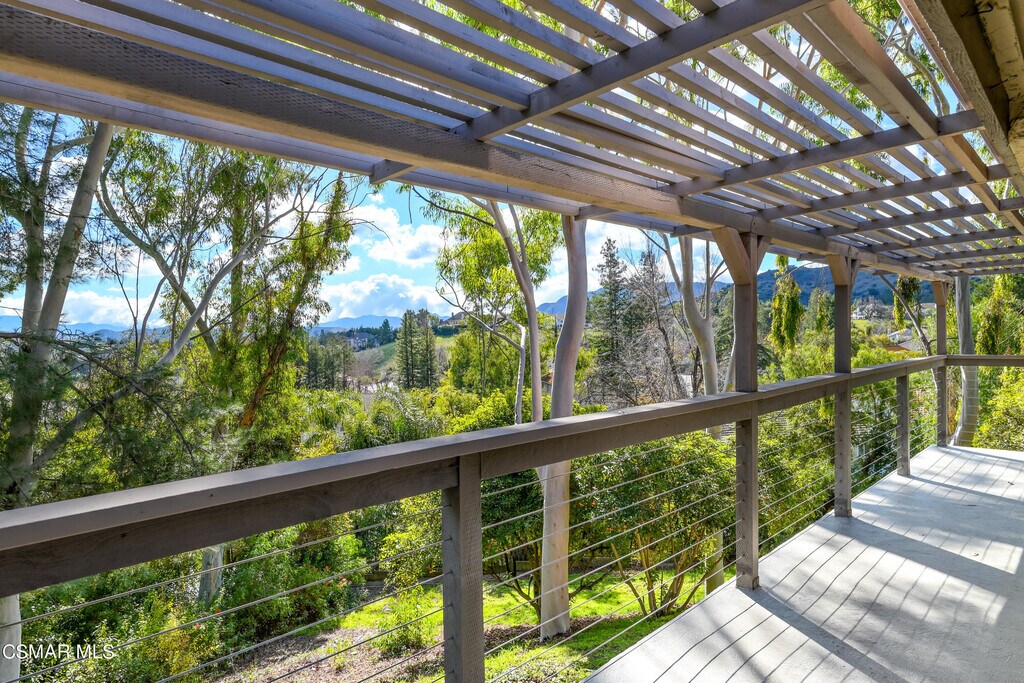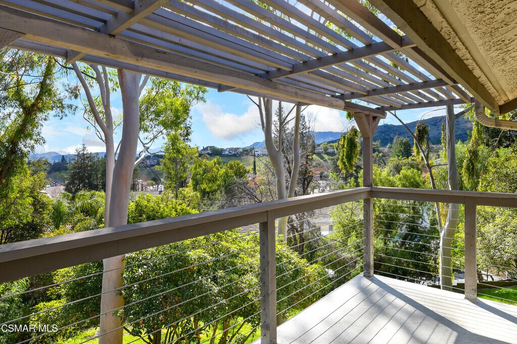 This wonderful townhouse, surrounded by pine and eucalyptus trees and backing to an expansive green space, has the feel of a mountain cabin. Freestanding (no connecting walls) Oak Park townhouse sits at the end of cul-de-sac offers privacy and gorgeous views. The home has 3-bedrooms, 2.5-baths, open space floorplan, hard wood, slate, carpeted floors, living room, dining room and a detected two-car garage with storage. The formal living and dining area with fireplace, expansive view windows, large deck, and soaring cathedral ceilings. Refrigerator, washer and dryer included with the rent. Country Vista condos is a wonderful community boasting a large community pool, spa, cabana and a lighted tennis court. Several nearby parks. Terrific Oak Park schools, great shopping, restaurants, nearby hiking and biking trails. Rental is managed by a professional property management company. Excellent credit, good references and fully verifiable income is required.