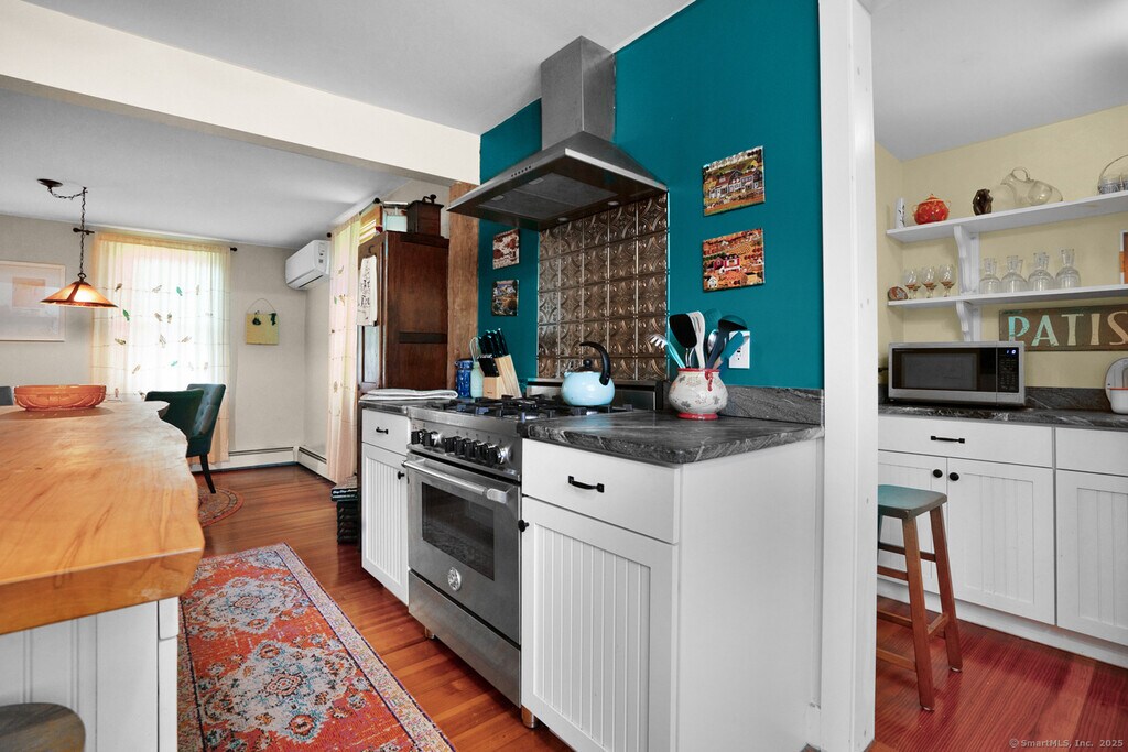 Mary PhelpsEnjoy this charming and private home on the Shepaug River! Every room in this house is welcoming and comfortable and offers incredible privacy. The views from the kitchen, living room, screened porch and bedrooms lead down to the river and up to the hills beyond. While enjoying the secluded setting, fire pit and river access you are also just minutes to Litchfield, New Milford, New Preston, Mt. Tom, Lake Waramaug and so much more! It's the perfect spot to enjoy the best of both worlds - fabulous restaurants, shopping, hiking and recreational activities and the privacy and comfort of your own house in the country. This house has an open farmhouse kitchen with charming pantry and is outfitted with all of the kitchen appliances and tools you need to create beautiful meals. There are two bedrooms, one sleeping nook (created inside a large closet!) so the house could sleep 5 people comfortably. The full bath on the bedroom level has lovely tile features and a bath + shower. There is a powder room on the main level. Outside you'll find beautiful stone steps leading to the firepit, from there head down the lawn to the river. Don't miss this chance to have the perfect summer!