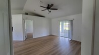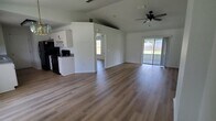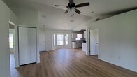 Concrete block 3 bed 2 bath home in Silver Springs Shores. Open concept with raised cathedral ceilings. There is plenty of room for a kitchen table beneath a lovely chandelier, You will find the spacious living room to be open and very well lit before branching off into hallways that lead to the bedrooms and bathrooms. The backyard has a screened-in patio with a view overlooking the rest of the property. Conveniently located just 20 minutes from Downtown Ocala. Pets are OK with one time non-refundable pet fee and monthly pet rent.