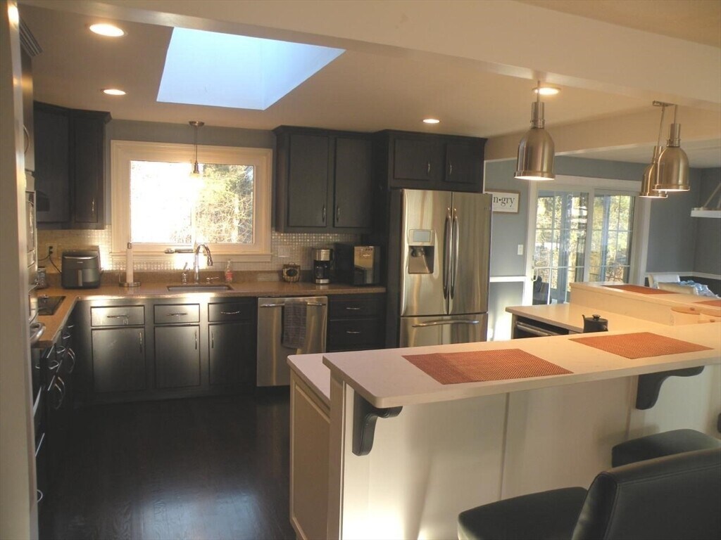 Access to the Reservoir Pond,(AKA The REZ) a large body of water where you are able to launch a boat,fish,jet ski or just relax by the inground firepit as you look out and listen to the waves hit the shoreline. Your own private oasis. Single family split-level home 7 rooms,2.5 bath home for rent. Double entry doors open to nice sized foyer. Main living area boasts lovely open floor plan updated kitchen,with hugh island/6 seats,fireplace living room and dining room in today's color palette. 3 season sun room overlooks in ground pool and lake. Deeded sitting area and direct entrance to lake. Kitchen has hardwood floors,stainless appliances,quartz counters,wine fridge,Hardwood floors throughout main level stained brown or light pine. Open floor plan in lower level with working fireplace. Lower level office or mudroom leads to 2 car garage. Renting home furnished or unfurnished. MLS# 73467793