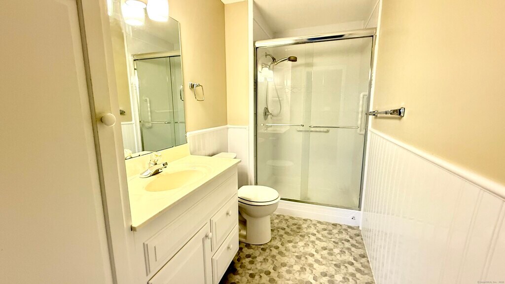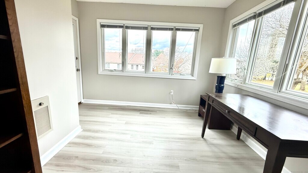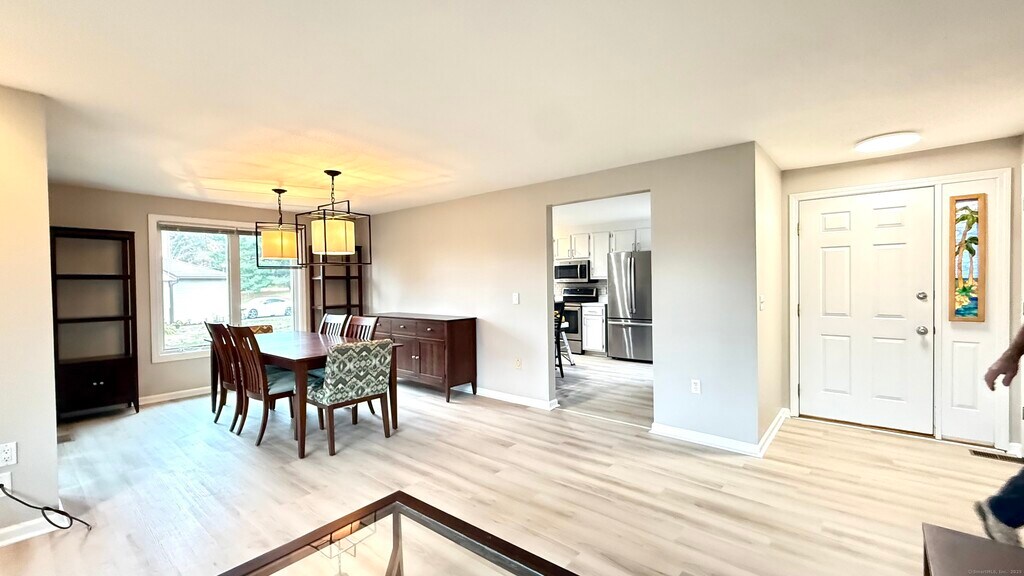 Call for Availability - Ranch-style condominium in a desirable South Windsor community offering 3 full bathrooms and 2/3 bedrooms including basement with full bath. The main level features low maintenance vinyl plank flooring throughout and an open-concept layout with a spacious kitchen showcasing white cabinetry, stainless steel appliances, and a center island overlooking the dining and living areas. The primary bedroom includes a renovated en-suite bath, and the bright sunroom provides additional space for relaxation or a home office. The fully finished lower level offers a large family or recreation room, a FULL BATH, and ample storage. Additional highlights include a two-car attached garage, natural gas heat, and central air conditioning. Residents enjoy access to community amenities including a pool, tennis court, and basketball court, all within close proximity to shopping, restaurants, and major highways for easy commuting. MLS# 24135459