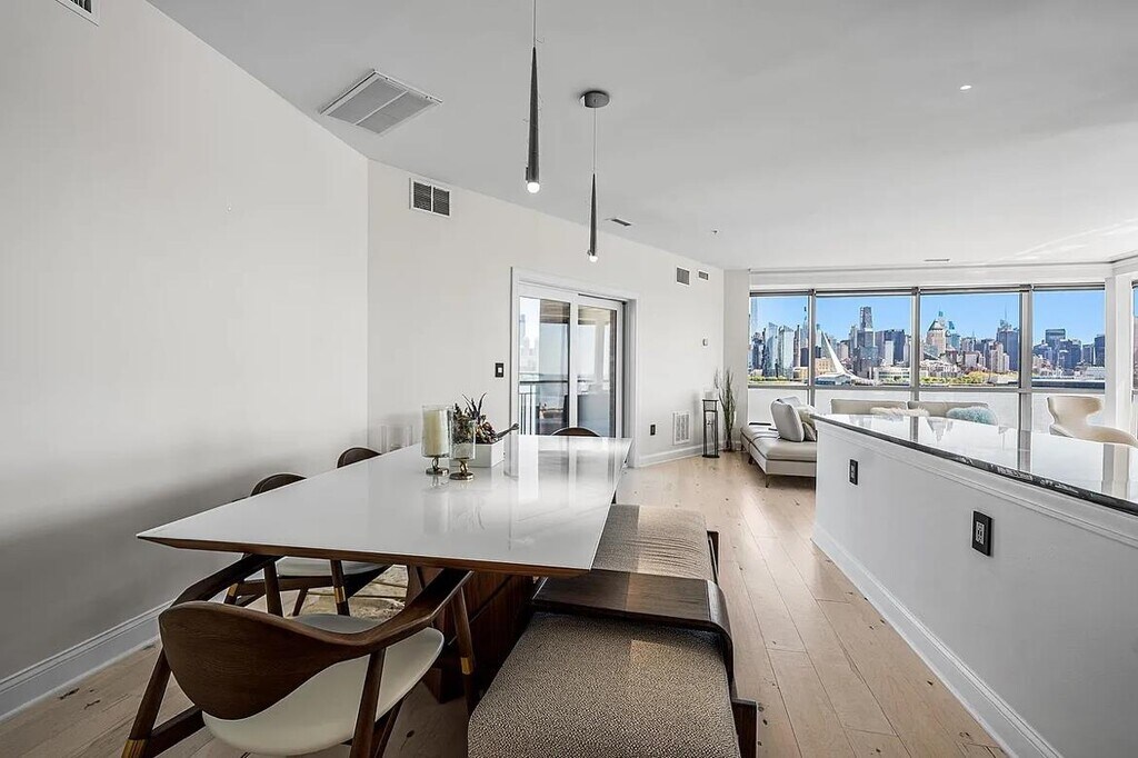 Stunning Luxury Penthouse with Unrivaled NYC Skyline Views – Fully Furnished & Move-In Ready Welcome to a once-in-a-lifetime penthouse offering the most breathtaking, unobstructed Manhattan skyline views you’ll ever experience. This expansive 1-bedroom, 2-bath residence spans an incredible 1,626 sq ft of meticulously designed living space, wrapped in floor-to-ceiling glass that brings the city directly to you. Step inside and immediately feel the scale—an open, airy layout drenched in natural sunlight, designer furnishings, and an effortless flow out to your private balcony, perfect for entertaining, relaxing, or simply taking in the panoramic views. The massive primary suite features a huge walk-in closet and a spa-like en-suite bath. The home also includes a second full bathroom for added convenience. A washer/dryer is in-unit, and 1 garage parking space is included. Located in one of the most desirable waterfront communities, you’ll enjoy immediate access to the NY Waterway Ferry, as well as a convenient bus line for quick and easy commuting into Manhattan. Dining, shopping, and scenic waterfront paths are all just steps away. Fully furnished and move-in ready, this penthouse offers a rare opportunity to live in luxury at the highest level. Offered for lease at $5,000/mo. Don’t miss out on this extraordinary home.