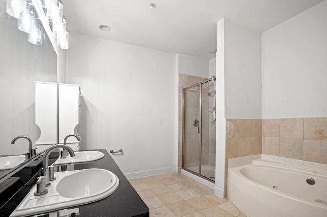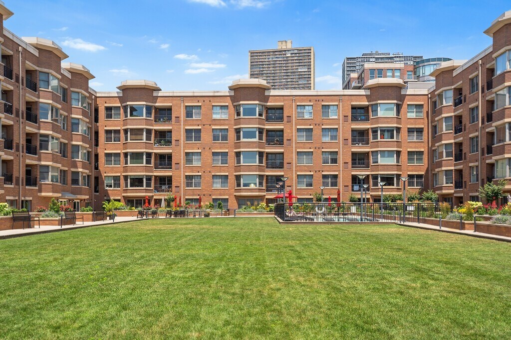 This stunning 1-bedroom, 1-bath condo features soaring 9-foot ceilings, enhancing its spacious and airy feel. The chefs kitchen is equipped with 42-inch cherry cabinets, granite countertops, stainless steel Viking appliances, and a SubZero refrigerator. The inviting living room boasts a beautiful bay window, hardwood floors, and elegant custom paint. The luxurious master bath offers dual sinks, a jacuzzi-style soaking tub, and a separate stand-up shower. A newer Samsung washer and dryer add convenience. Enjoy top-tier amenities, including a 24-hour concierge, fitness center, clubroom lounge, business center, and an outdoor swimming pool with a shared courtyard featuring breathtaking NYC skyline view