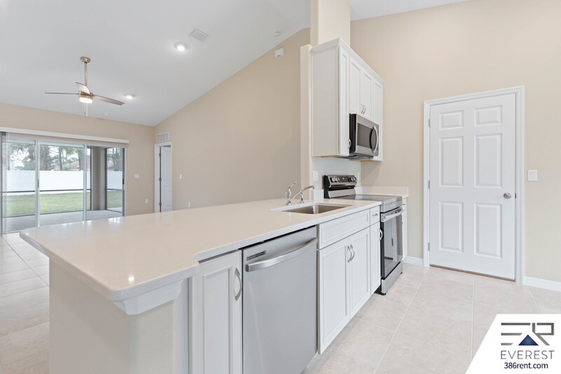 THIS LIKE NEW CUSTOM BUILT HOME FEATURES 4 LARGE BEDROOMS, 2 BATHROOMS, KITCHEN WITH UPGRADED STAINLESS STEEL APPLIANCES, QUARTZ COUNTERS, BREAKFAST BAR AND NOOK... TILE FLOORING IN ALL COMMON AREAS, AND BRAND NEW CARPET IN THE 4 LARGE BEDROOMS, MASTER SUITE OFFERS WALK-IN SHOWER AND LARGE WALK-IN CLOSET. SPACIOUS LIVING ROOM WITH DOUBLE SLIDER LEADING TO COVERED BACK PORCH AND HUGE, PRIVATE BACKYARD. 2 CAR ATTACHED GARAGE. HOME HAS 2336 TOTAL SQ FT, 1632 LIVABLE SQ FT. LOCATED IN THE DESIRABLE INDIAN TRAILS NEIGHBORHOOD, WITH EASY ACCESS TO SCHOOLS, SHOPPING, TOWN CENTER, BEACHES, MAJOR HIGHWAYS, DAYTONA BEACH AND HISTORIC ST AUGUSTINE... SOLID LANDLORD! AVAILABLE FOR IMMEDIATE MOVE-IN. $2300 ON 3-YEAR LEASE $2400 ON 2-YEAR LEASE $2500 ON 1-YEAR LEASE