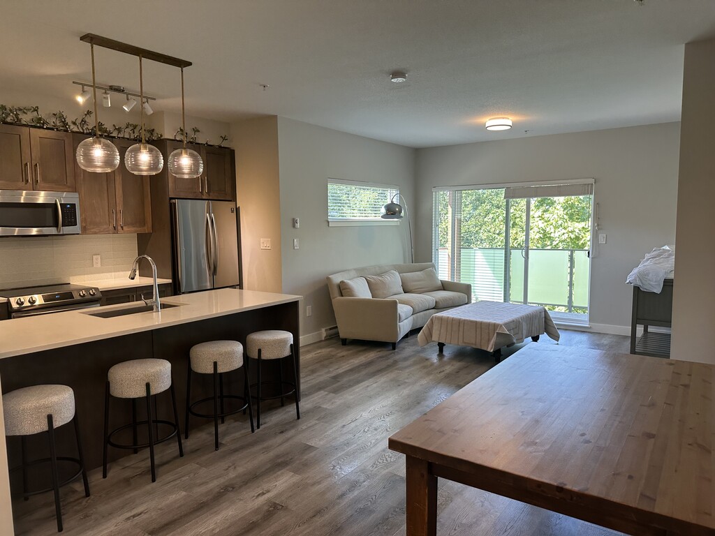 Beautiful top floor, fully furnished 2 bedroom, 2 bath suite with 1 parking. Facing a tranquil river leading to Nanaimo's waterfront. Short walk to seawall and easy access to public transportation - only 15 minutes to Nanaimo Regional General Hospital and 25 mins to Vancouver Island University. Rent includes wifi, heat extra. Minimum 3 month lease. Available January 1, 2026.