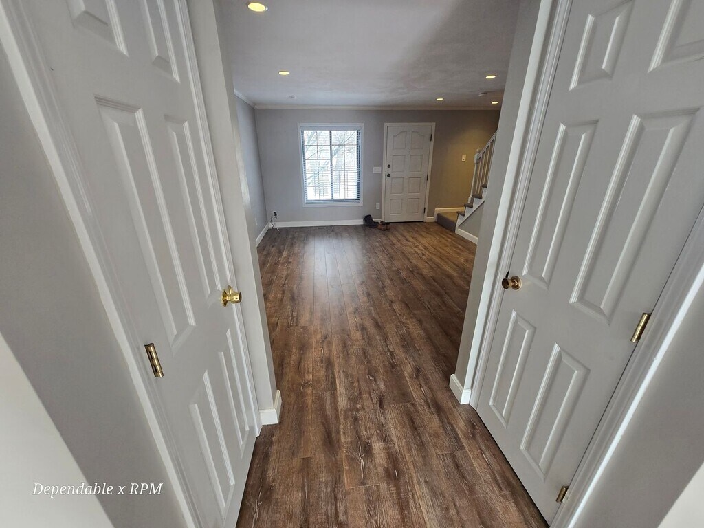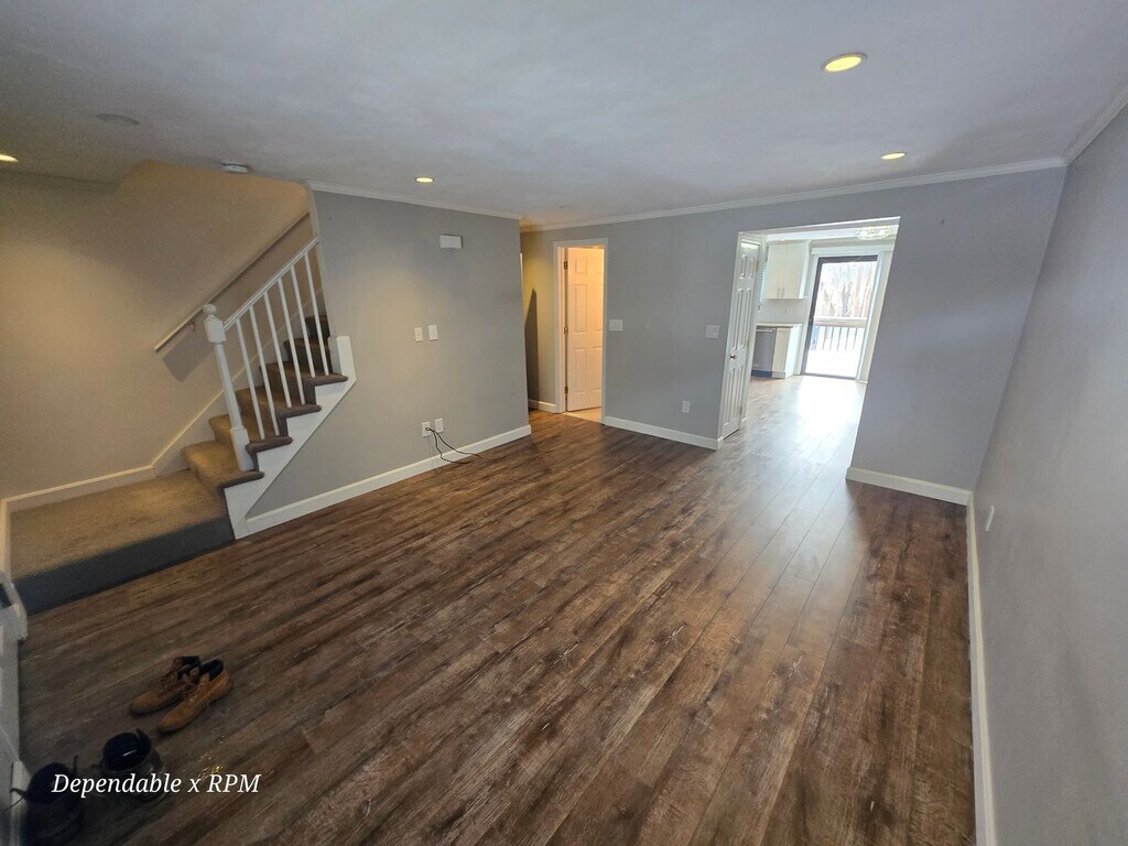 Do not miss out on this spacious brick front 2 Bedroom 2 Bathroom townhouse. The townhouse boasts 1,500 sq ft of living space. The property includes 2 off street parking spots (one assigned), Central Heat / AC, brand new washer/dryer, and a Partially finished basement perfect for a play room or additional storage. The kitchen is completely renovated and new with shaker style white cabinets, white tile backsplash, stainless appliances, and recessed lighting throughout. A private deck is the cherry on top. Location Location Location as this townhouse is close to all downtown shops, restaurants, Lake Quannapowitt and all public transportation. .6 mile (10 min) walk from Wakefield purple line commuter rail. First month rent and security deposit required For showings please call: Zack Hall c. Dependable Real Estate, Inc