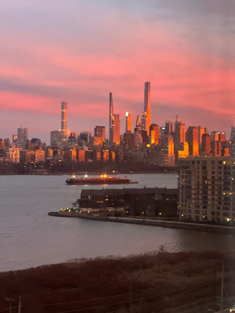 Beautiful 3rd floor apartment in the Bergen Ridge community, nestled between the Palisades and Hudson river with stunning views of NYC skyline. Very conveniently located steps away from transportation (NJ Transit, Shuttles to NYC/Ferry/Light Rail), Hudson County Park and Edgewater(Shopping, Dining, Entertainment, Boardwalk, etc.). The entire apartment has a sense of light, air and open-space with East and West exposures. Washer/Dryer in the unit. Assigned 1-car outdoor parking space. Central AC & efficient central gas heating. Utilities cost appx $150 a month. Appx 1100 square feet. Outdoor community pool with same great view. Cat is allowed. Credit check, interview required from tenant. Available for April 5 occupancy.