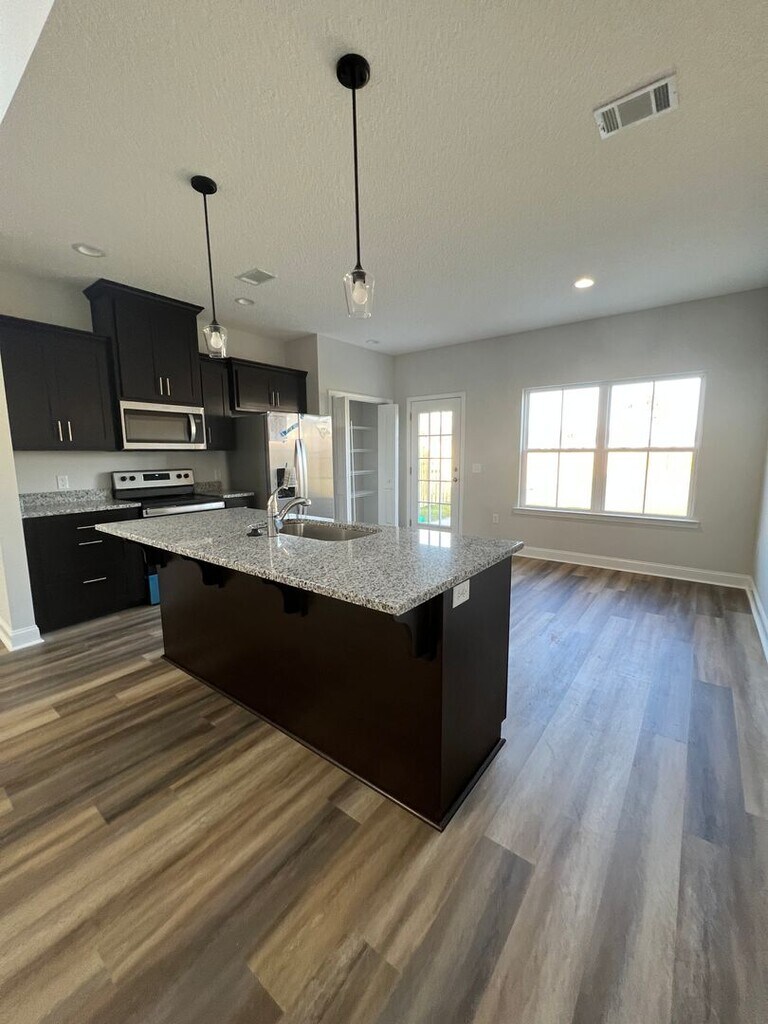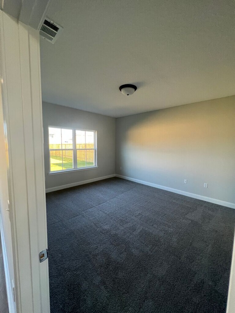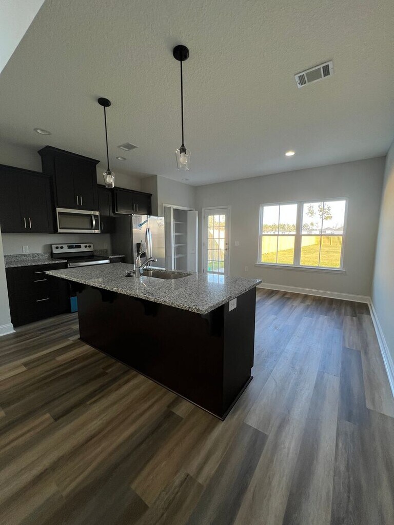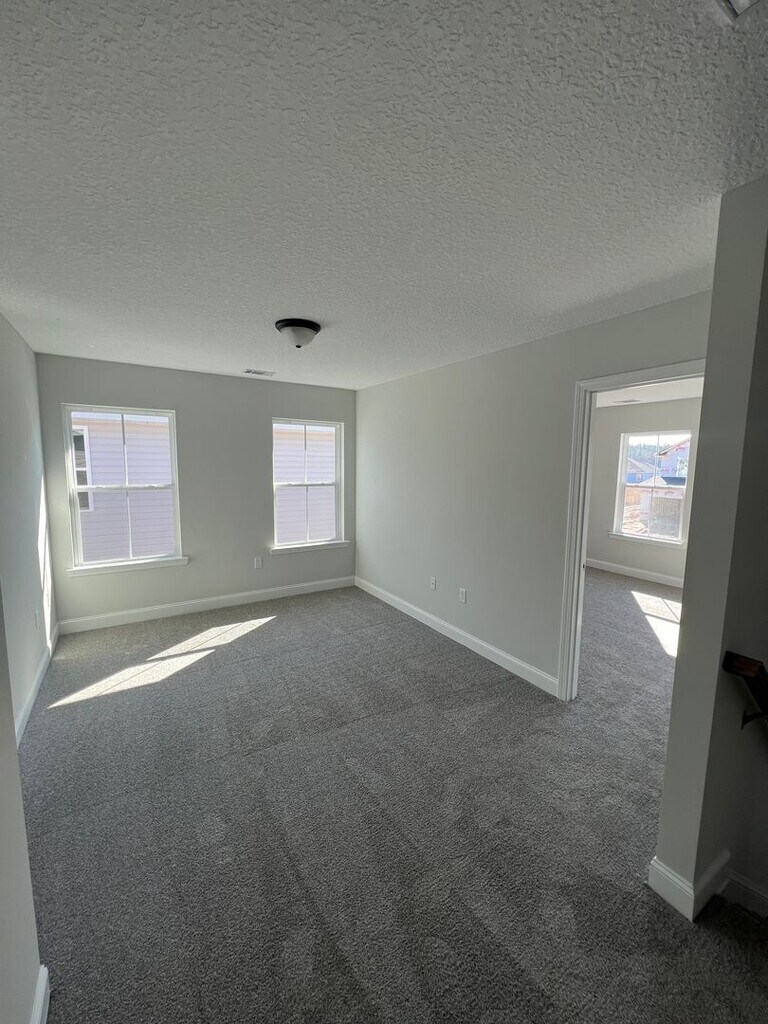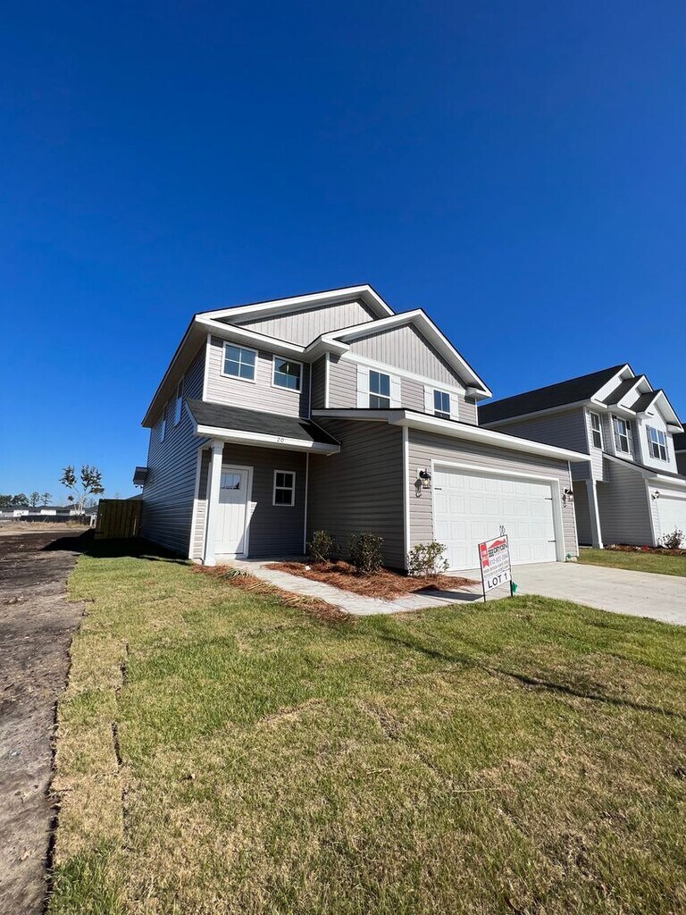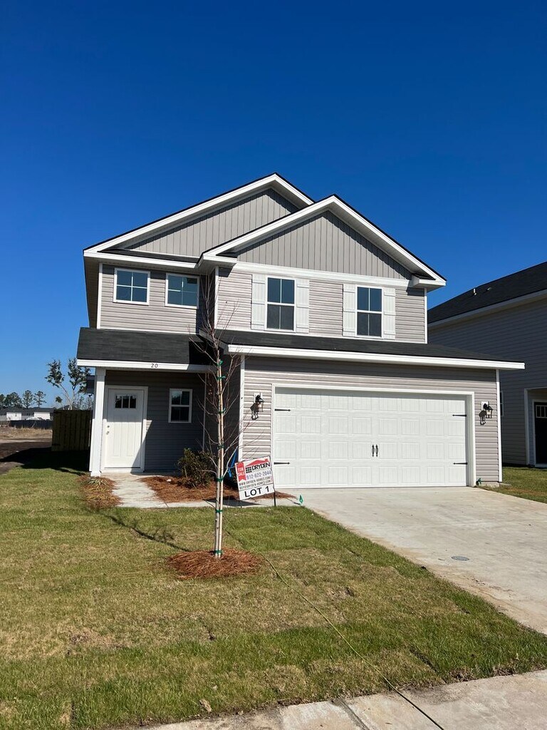 Don't wait to check out this amazing home in the brand new Heritage Pointe phase of Flemington Village subdivision in Hinesville! This home makes a stunning first impression with a cathedral ceiling in the Great Room. Kitchen is open with a center island with bar seating, adjacent eating area, all stainless steel appliances, and spacious pantry. Owner's Suite is located on the first floor and has a large en suite bath complete with soaking garden tub and stand-alone shower, as well as a double vanity. Laundry Room is also on the main floor for maximum convenience and has a useful utility closet for extra storage. Upstairs you will find a bonus loft that is perfect as a flex space for an office, den, play room, etc. Three bedrooms are spacious and share a full bath with an oversized vanity. LVP flooring in the wet areas and carpet in the bedrooms for a cozy feel. Backyard is large with a privacy fenced in yard, Bermuda sod, and irrigation system. Located on a corner lot near the community mailbox and close to green space in the common area. Just a few minutes from neighborhood groceries, dining, and Downtown Hinesville. Approximately 4.5 miles to Fort Stewart. No Pets Allowed!