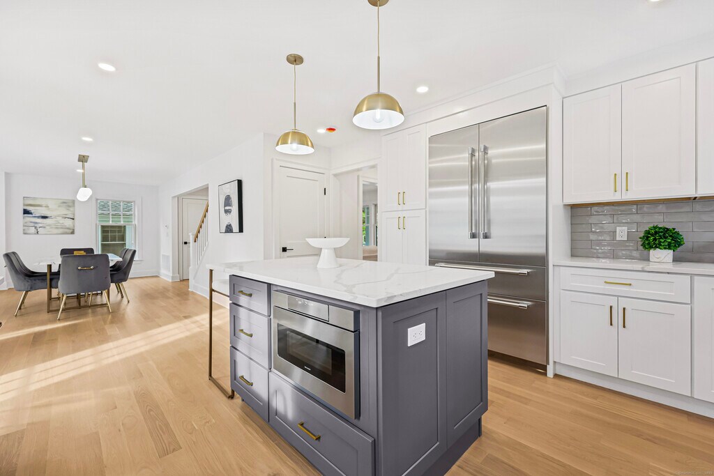 Call for Availability - Gorgeous, completely new build from foundations up, in the heart of Old Greenwich. Incredibly convenient to Binney Park, Perrot Library, Metro-North, and OG village restaurants and shopping. This beautifully designed home offers 4 bedrooms 3 full baths, and a laundry all on the 2nd level, and an additional 5th bedroom, 1 full bath and bonus space on the 3rd level. Enjoy a private patio and expansive fully fenced-in yard, ideal for outdoor gatherings and relaxation. MLS# 24131894