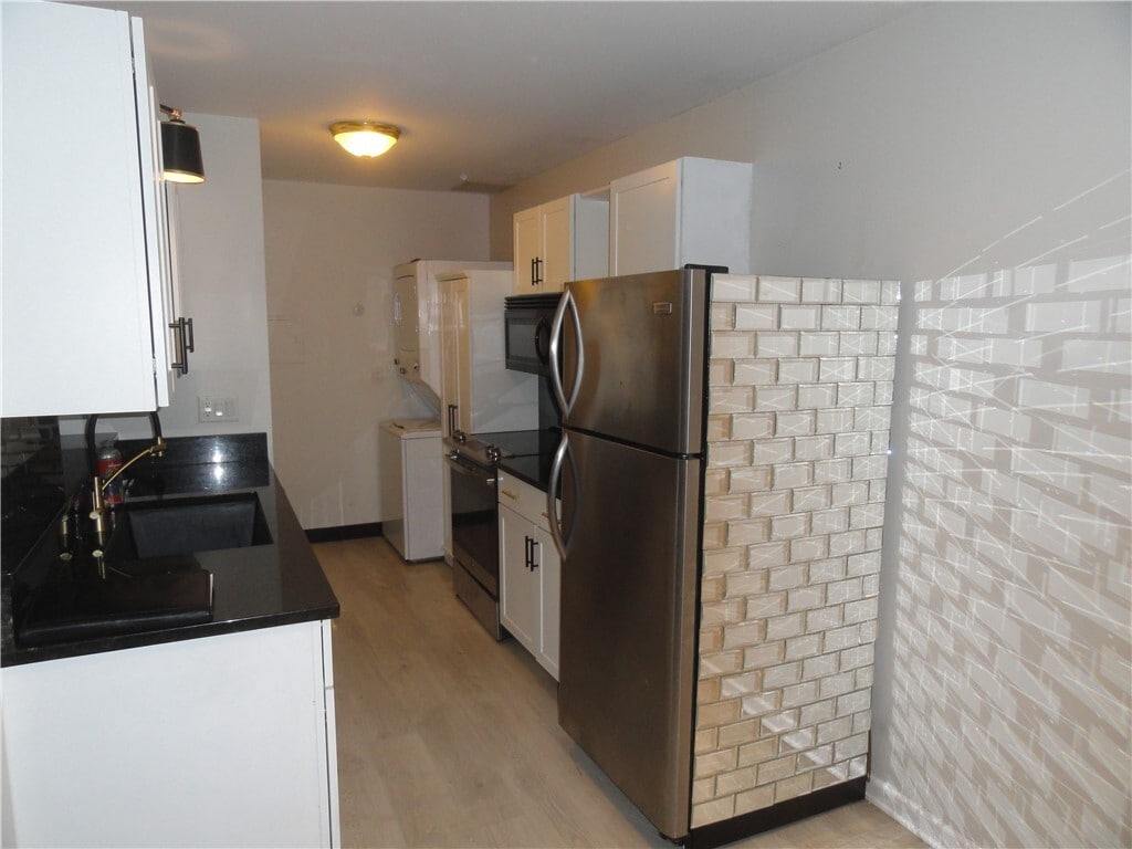 contemporary interior,black solik surface countertops,all appliances,luxury vinyl flooring throughout. remodeled bath with Jacuzzi tub/shower and exotic shower. Primary bedroom has walk-in closet. forced air gas furnace with central air. Apply at RentSpree: