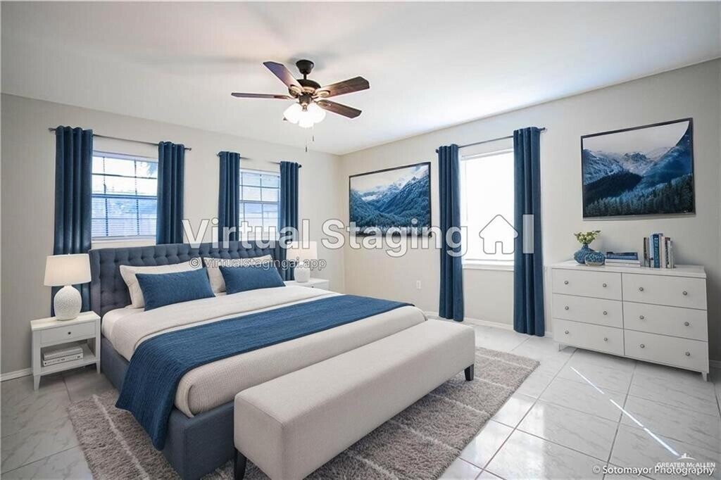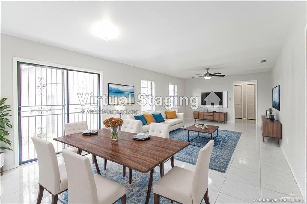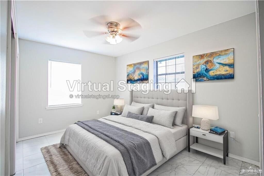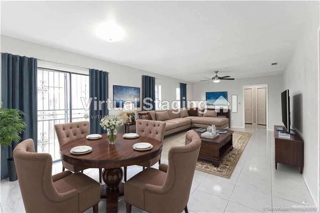 Well-maintained and move-in ready,this charming home at 116 W Enfield Rd offers a prime location within walking distance to restaurants and just minutes from HEB,the Courthouse,UTRGV,and the expressway. Featuring new countertops and fresh paint throughout,the home welcomes you with an open formal living and dining area filled with natural light,a kitchen facing a second dining space,and a large main bedroom with backyard views,walk-in closet,and en-suite bathroom. A second full bathroom with a shower/tub combo and a versatile third bedroom that can also serve as a second living room or TV room add flexibility to the layout. Outside,enjoy a spacious fenced backyard with mature trees and a storage shed,perfect for relaxing or entertaining.