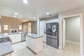 Spectacular Home with private backyard and sparkling Pool! The gourmet island kitchen features quartz countertops, recessed lighting, tile flooring, a nook, and stainless-steel appliances including a refrigerator, gas stove, microwave, and dishwasher. Enjoy a spacious living and dining room combo with vaulted ceilings, ceiling fan, and tile flooring, plus a separate family room with vaulted ceiling and gas fireplace. The primary suite boasts double door entry, ceiling fan, walk-in closet, and an upgraded bath with quartz vanity and dual sinks, oversized shower, and tile flooring. Two secondary bedrooms include ceiling fans, with a hall bath featuring a quartz vanity and tub/shower. Downstairs powder room, laundry room with cabinets and washer/dryer, solar screens, custom interior paint, upgraded baseboards, alarm system, & Ring doorbell. The private rear yard offers a covered patio and sparkling pool with child safety fence, and low maintenance landscaping. Gorgeous!