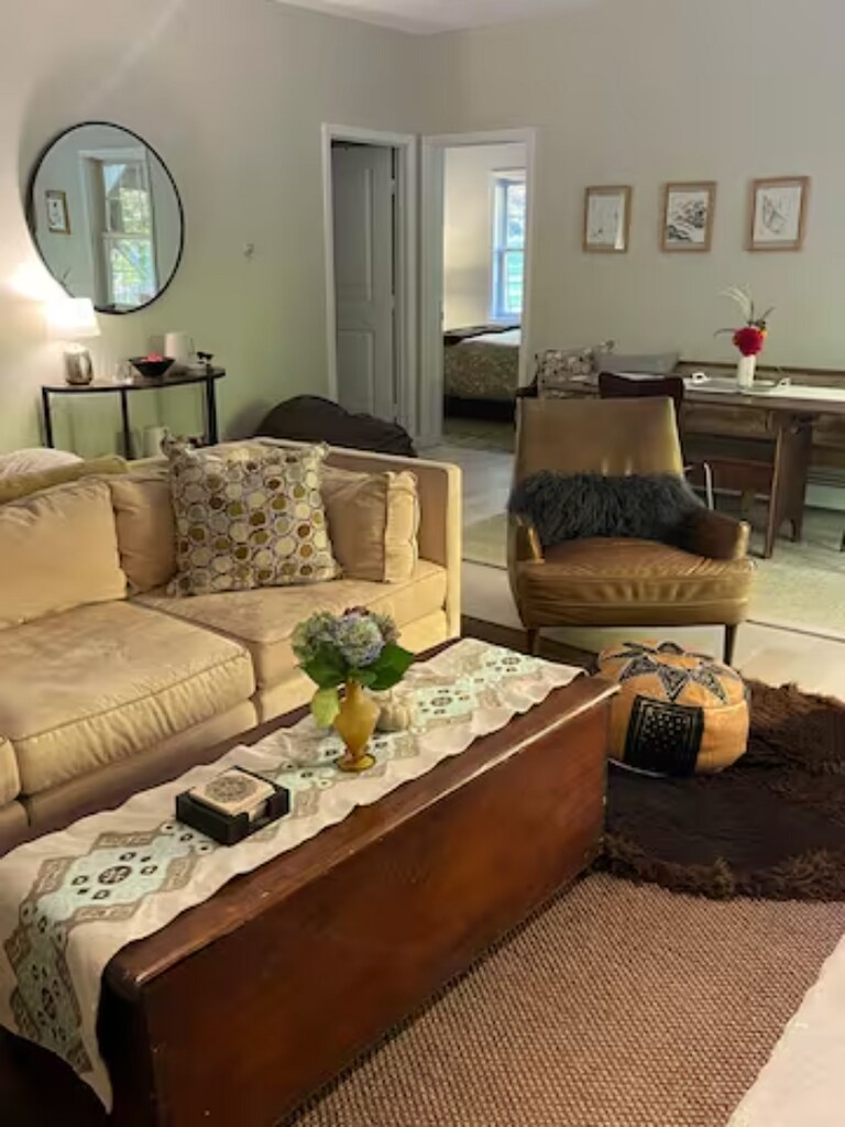 Property Id: 2429539 The sweet Fox Room has views of perennial gardens, deep woods, an old stone wall and an abundance of wildlife (deer, fox, turkeys, owls, chickadees and many more!) It is cozy, quiet and on the first floor of our 3200 sq ft contemporary home facing the back of our property. It is furnished with a comfortable full size bed, desk, bench and dresser. Additionally, there is a bonus adjacent yoga room available for this housemate's exclusive use. Bed linens and towels are provided. Utilities are included. I'm a self employed, single mom w 2 kids in college, 2 goofy doodles and 1 shy rescue kitty. I enjoy both hosting and helping others get to know the beautiful Hudson Valley. I'm especially grateful for the many friendships that have resulted living with other adults from different backgrounds and stages of life. I do all that I can to ensure we are a compatible bunch, including background & credit checks, interviews, reference checks and meeting face-to-face. At any given time there may be up to 3 housemates here and my kids are home for breaks. In the past we've hosted a Chilean architecture professor, French tea taster, Hospice music therapist, traveling medical dietician, mathematics PhD student, a Brooklyn sculptor and a post doc studying the universe and gravitational waves. We are in the town of Milan, which is rural and picturesque, but also very close to the quaint villages of Rhinebeck and Red Hook for fine dining, cultural events, shopping and services. The Taconic State Parkway, Amtrak (Rhinecliff) and regional public transportation via bus are 10-20 minutes away. NYC is a 90 minute train ride away.