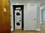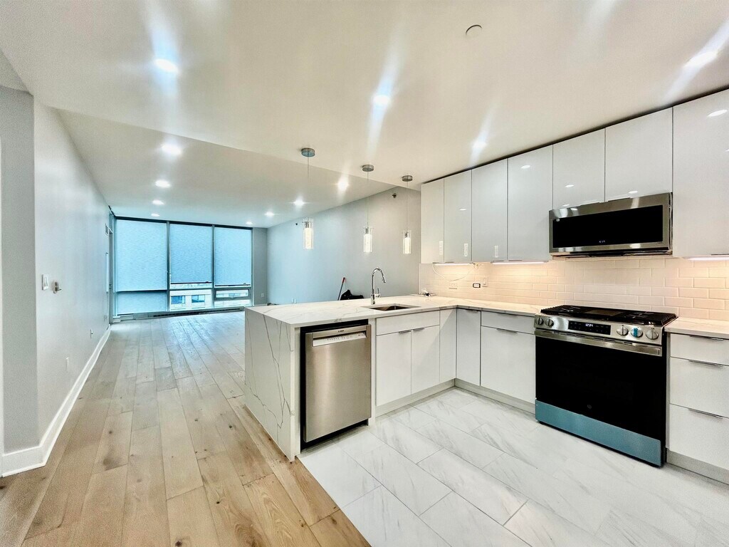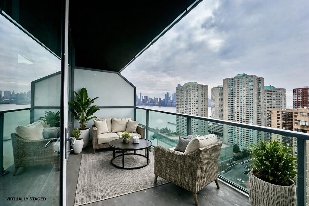 This newly renovated south-facing one-bedroom apartment offers stunning direct views of the Hudson River and New York City, complete with a private balcony. The home is flooded with natural light throughout the day, illuminating both the living room and bedroom. Its open-concept layout creates a welcoming space, perfect for entertaining or relaxing. The brand-new gourmet kitchen is equipped with sleek stainless steel appliances, enhancing the home’s modern aesthetic. The bathroom has also been beautifully renovated, offering a fresh and stylish retreat. Additional features include central heating and air conditioning, newly installed hardwood floors, and the convenience of an in-unit washer/dryer. The building offers an impressive selection of premium amenities, including a 24-hour concierge, fitness center, jacuzzi, sauna/steam room, resident lounge, conference room, children’s playroom, and a rooftop deck with breathtaking NYC views. Situated close to mass transit, the property provides an easy commute to New York City via the Newport and Hoboken PATH stations or ferry. Everyday conveniences are just steps away, with a Morton Williams supermarket next door and nearby options such as Target, Duane Reade, Newport Mall, and Newport Green Park. This home seamlessly combines luxury, comfort, and convenience, making it an exceptional choice for modern urban living.