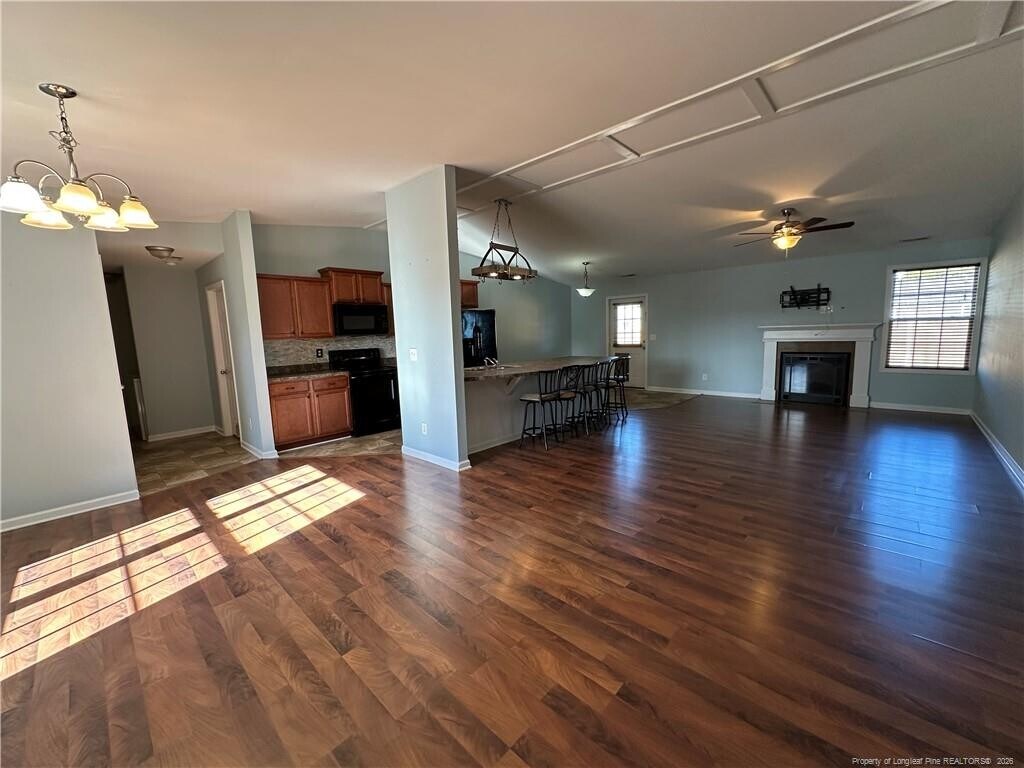 Remaining JANUARY Rent FREE!! Spacious Corner Lot Home with Split Floorplan and Open Concept Living Rm, Dining Rm & Kitchen! 3 Bedrooms & 2 Full Baths. with NO Carpet. The open concept gives you ample space between the Living Room with Fireplace, Dining Area and Kitchen with Breakfast Nook and extended Bar with Sitting Space. The Primary Bedroom includes the Bath with Double Vanity & His & Hers WIC. The opposite side of the Home has the other 2 Bedrooms & other Full Bath. The Backyard has a Covered Patio and Privacy Fencing. 2 Car Garage completes this great Property! The washer & dryer are included but not warranted by the owner. ***REQUIRED LIMITED LIABILITY PROTECTION POLICY-ADDITIONAL $ 15 PER MONTH***