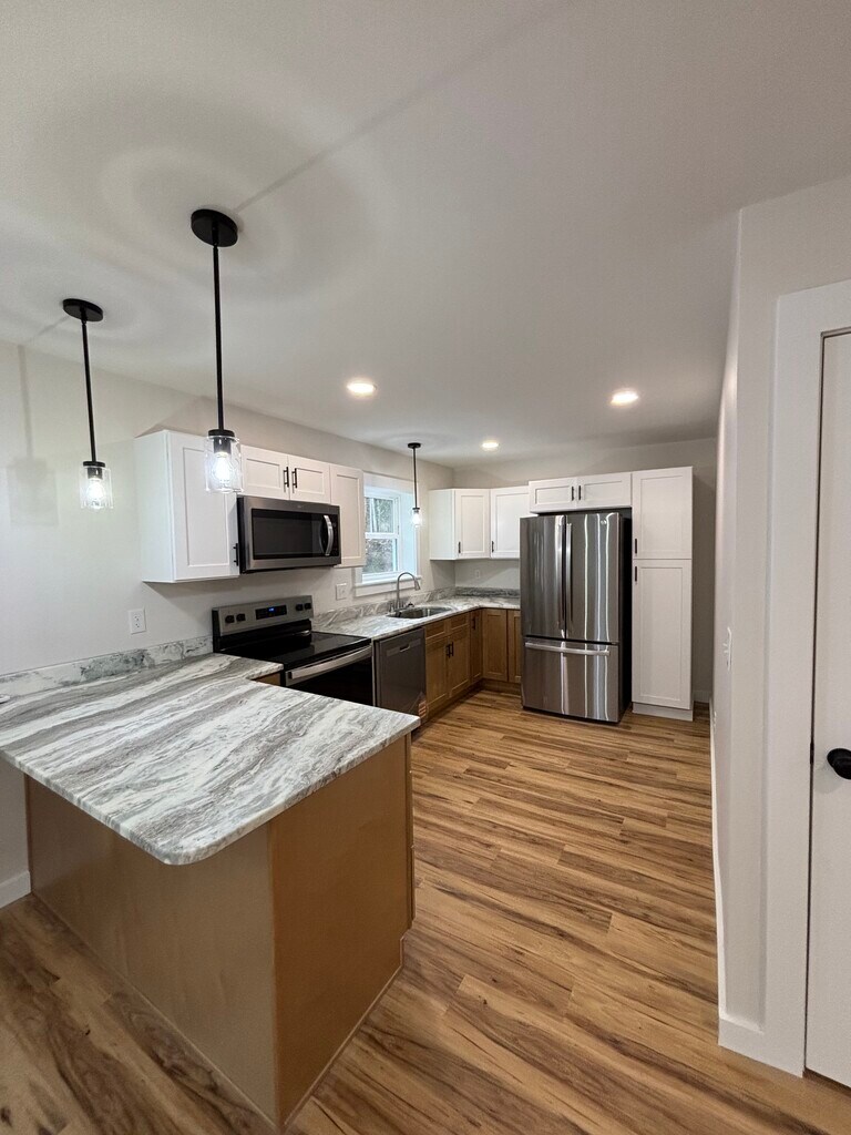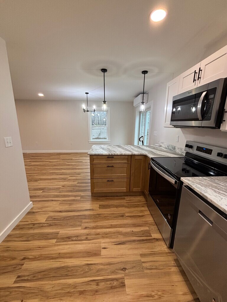 Welcome to this stunning new-build duplex offering modern comfort, elevated finishes, and a highly desirable Hampden school district address all while being just minutes from the heart of Hermon. This premium 3 bedroom, 2.5 bathroom unit is thoughtfully designed with an open-concept layout, perfect for both entertaining and easy daily living. The kitchen features beautiful granite countertops, quality cabinetry, and seamless flow into the living and dining areas. Upstairs you will find all 3 bedroom plus convenient laundry area furnished with washer and dryer included. The huge walk in coat closet downstairs provided exceptional storage space. Step outside to enjoy a late concrete patio with privacy fencing, ideal for relaxing or grilling year-around. Additional features include: Radiant heat on BOTH levels for incredible energy efficiency and comfort. Large Heat pump for cooling and heating Oversized single car garage with extra leg room for storage. 1540 sq ft of well planned living space Brand-new construction, move in ready with nothing to update or repair This is the perfect blend of comfort, quality and convince in on of the area's most sought after locations. 1 year lease, Renter is responsible for heat, electricity and internet, absolutely no smoking of any kind premise. Snow, Lawn and on site trash included in rent.