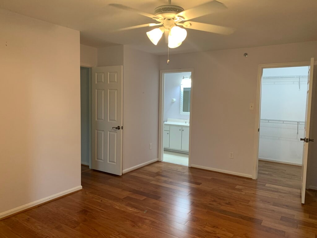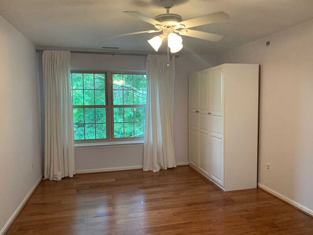Gorgeous top-floor 2 bedroom, 2 bath condo in the coveted and very quiet Loveton Farms community, newly available for rent October 15 or soon after! Minutes from Wegman’s, restaurants, dry cleaners, cinema, local schools and I-83, making it the ideal location for commuters. Close to Hunt Valley Town Center, Oregon Ridge, the NCR Trail, and a short distance to Towson University! This bright and open 3rd floor condo is available for rent for the first time, and has beautiful vaulted ceilings, partially-new hardwood flooring (kitchen will be LVP, bathrooms tiled), an electric fireplace, installed curtains in every window area, and two different sliding glass doors out to a lovely balcony. The kitchen has been opened up to the dining room (many units in this community have closed kitchen areas)- it features newer stainless steel appliances, a built-in microwave, ample cabinets, and a ceiling fan. Two bedrooms (master has hardwood floors, smaller bedroom carpeted), each bedroom has owner-installed storage space. Two full baths, a wonderful front room that can be an office or den, that also opens to the balcony. Lots of natural sunlight flows through all the windows. The master bedroom suite is generous, with walk-in closet, water heater (updated fall 2022) and private bath. Modern touchscreen controls heating/cooling, with a completely new HVAC system installed fall 2022. Laundry machine and dryer included! A nice TV display table can also be left in unit, if the renter desires. Outdoor balcony contains nice-sized storage closet. Rainflower Path condos are housed in secure buildings that require guests to use a callbox to gain lobby entry, and two separate keys provide entry to the building and to the individual unit. Plenty of unassigned parking. Owner pays Condo Fees/Water. Renter pays Electric. No pets or smoking allowed. You will love it here!